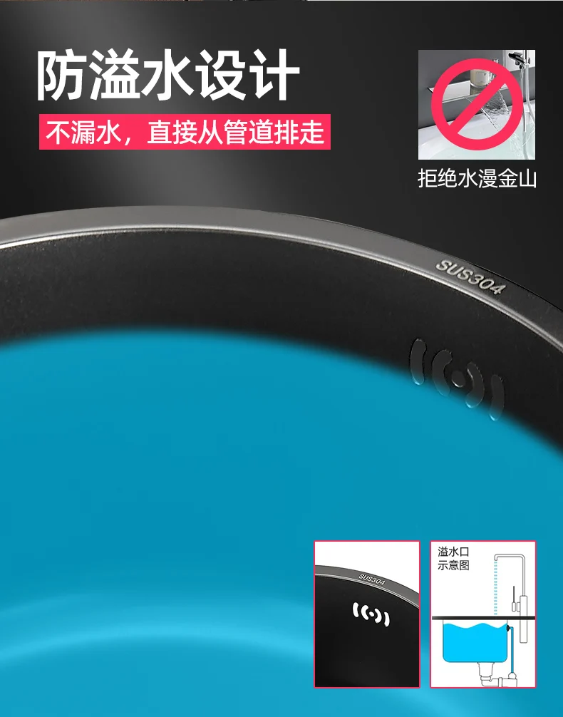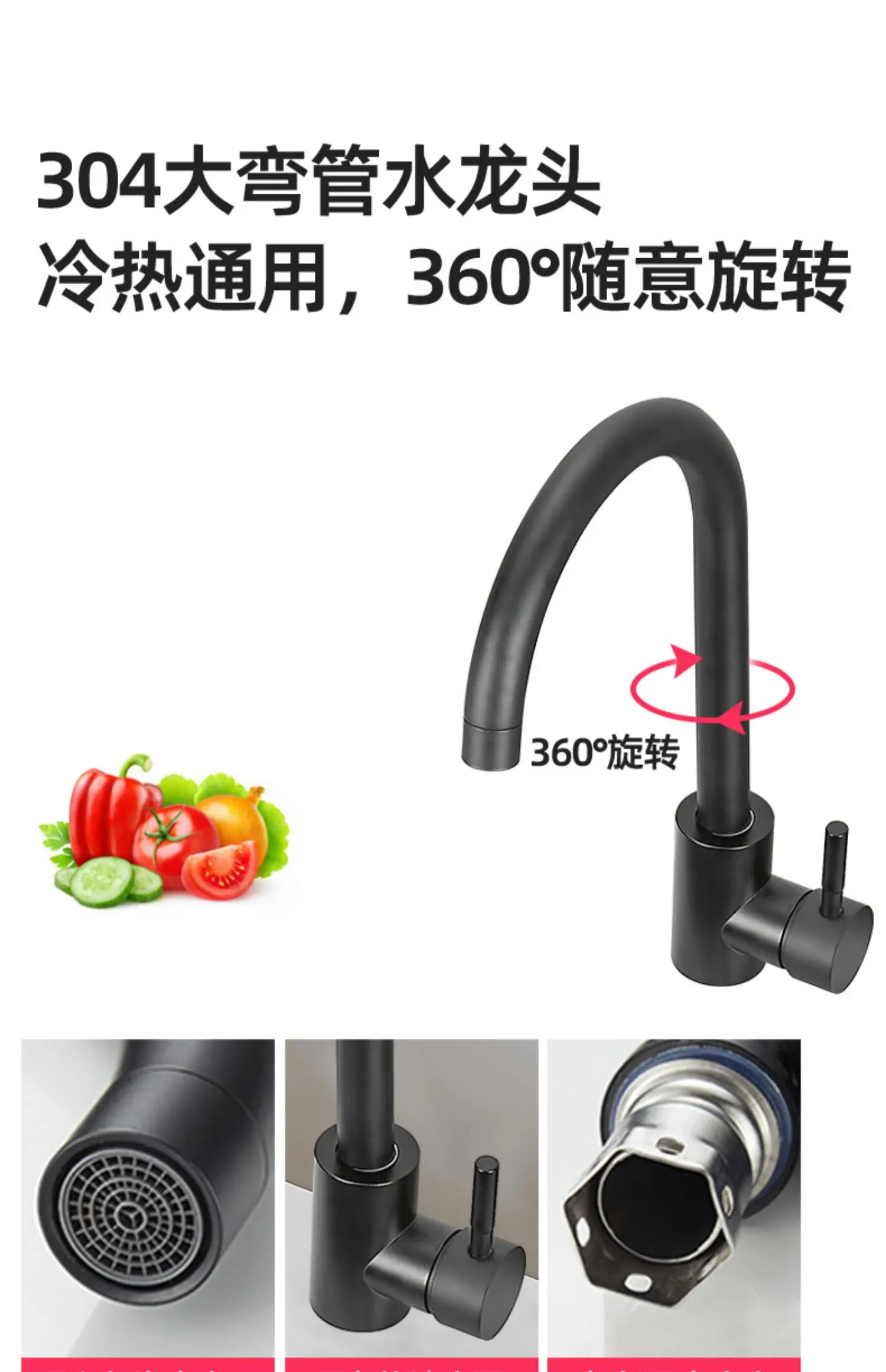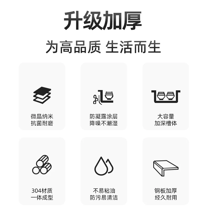 อ่างล้างจานครัวแบบชามเดี่ยวขนาดใหญ่ สแตนเลส 304