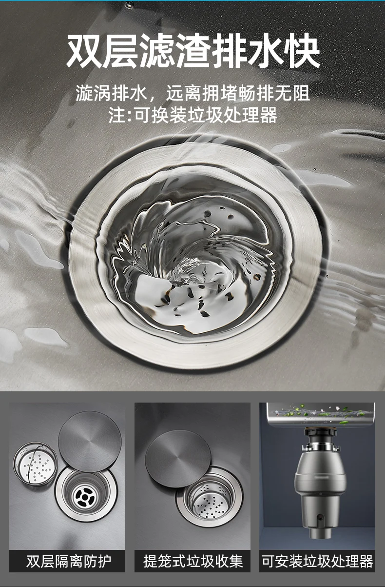 อ่างล้างจานสแตนเลสแบบน้ำตกพร้อมก๊อกน้ำดิจิตอลสีเขียว รุ่นใช้ในครัวเรือน อ่างเดี่ยวขนาดใหญ่ ดีไซน์แบบปุ่มเปียโน