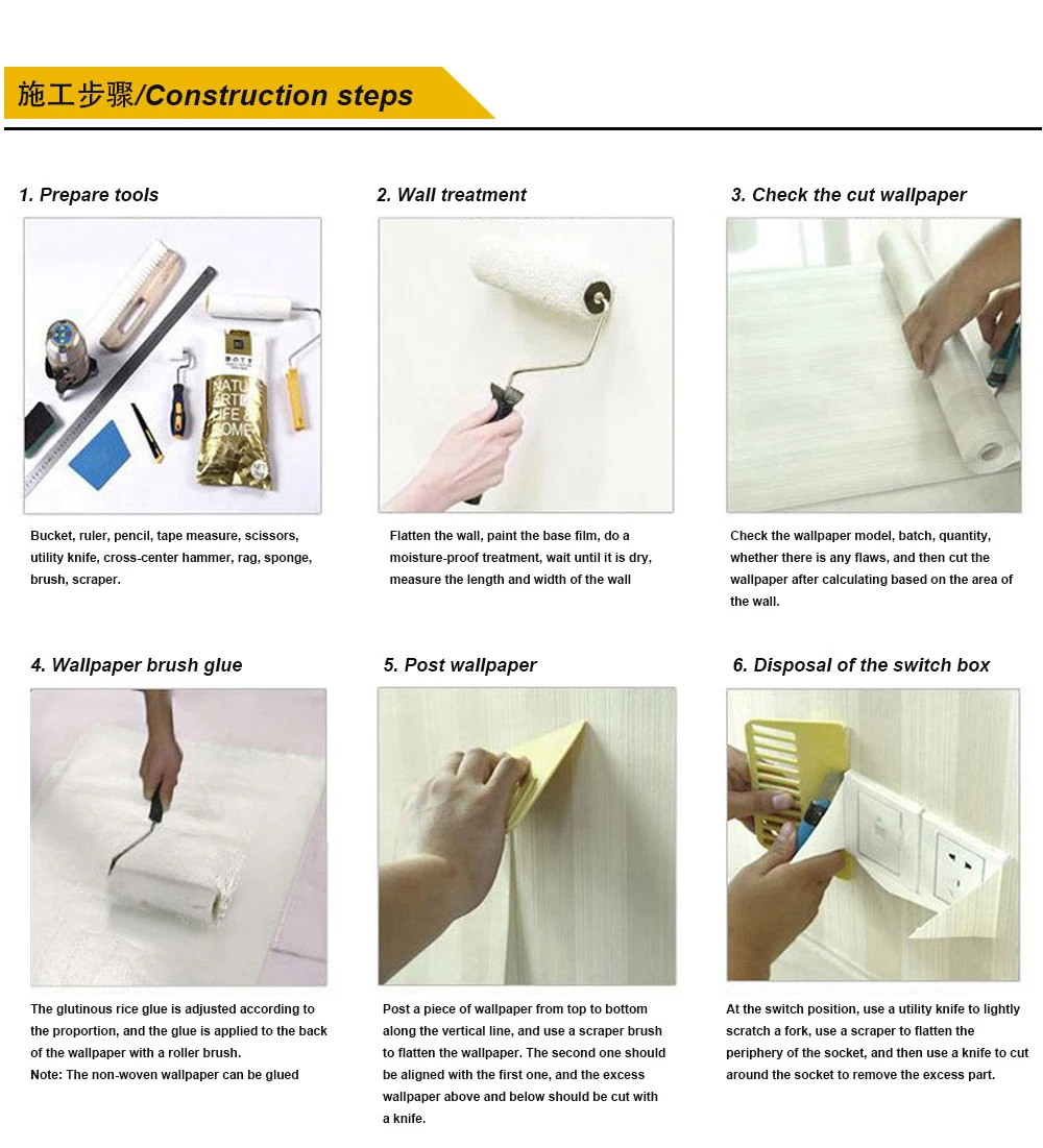1.วอลล์เปเปอร์ไม่มีกาวในตัว คุณต้องซื้อกาวของคุณเองเพื่อติด!นอกจากนี้ หลังจากการผลิตวอลเปเปอร์ บรรจุภัณฑ์พลาสติกก็ดําเนินการ มีกลิ่นหมึกบางอย่างที่ไม่ได้ปล่อยออกมา ซึ่งอาจทําให้เกิดกลิ่นเล็กน้อยสําหรับลูกค้าที่ไวต่อกลิ่นมากหลังการแกะกล่องนี่เป็นสถานการณ์ปกติหลังจากแกะและติด กลิ่นจะค่อยๆ หายไปหลังจากการระบายอากาศผลิตภัณฑ์ของเราสอดคล้องกับมาตรฐานแห่งชาติสําหรับวัสดุตกแต่งภายใน โปรดมั่นใจได้ว่าการใช้งาน