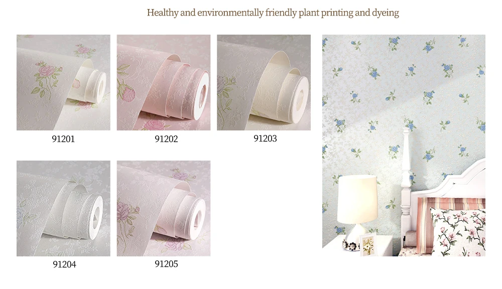วอลเปเปอร์ตกแต่งบ้านไม่ทอสดดอกไม้ขนาดเล็กกระดาษ Pastoral ความอบอุ่นสาวโรแมนติกห้องนอนห้องนั่งเล่นวอลล์เปเปอร์