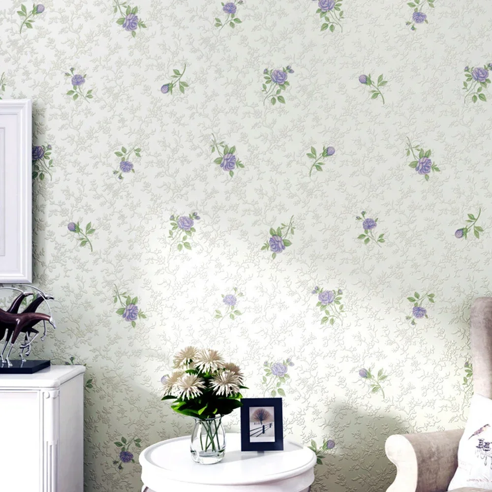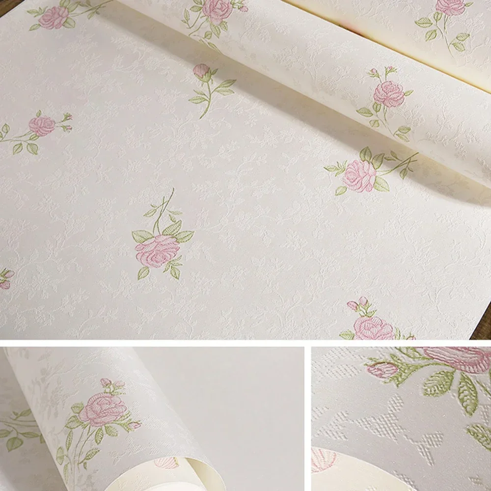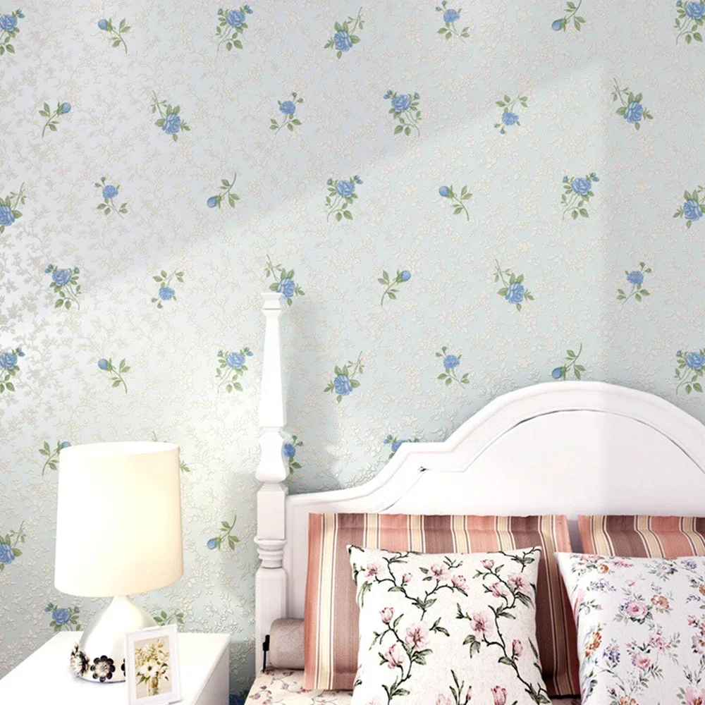 วอลเปเปอร์ตกแต่งบ้านไม่ทอสดดอกไม้ขนาดเล็กกระดาษ Pastoral ความอบอุ่นสาวโรแมนติกห้องนอนห้องนั่งเล่นวอลล์เปเปอร์