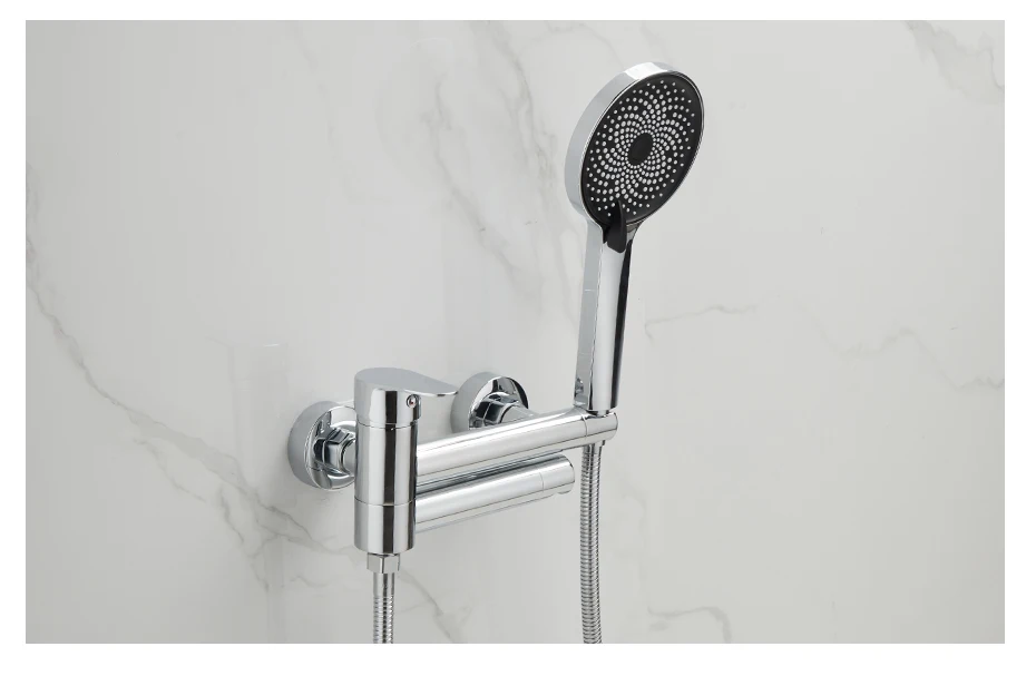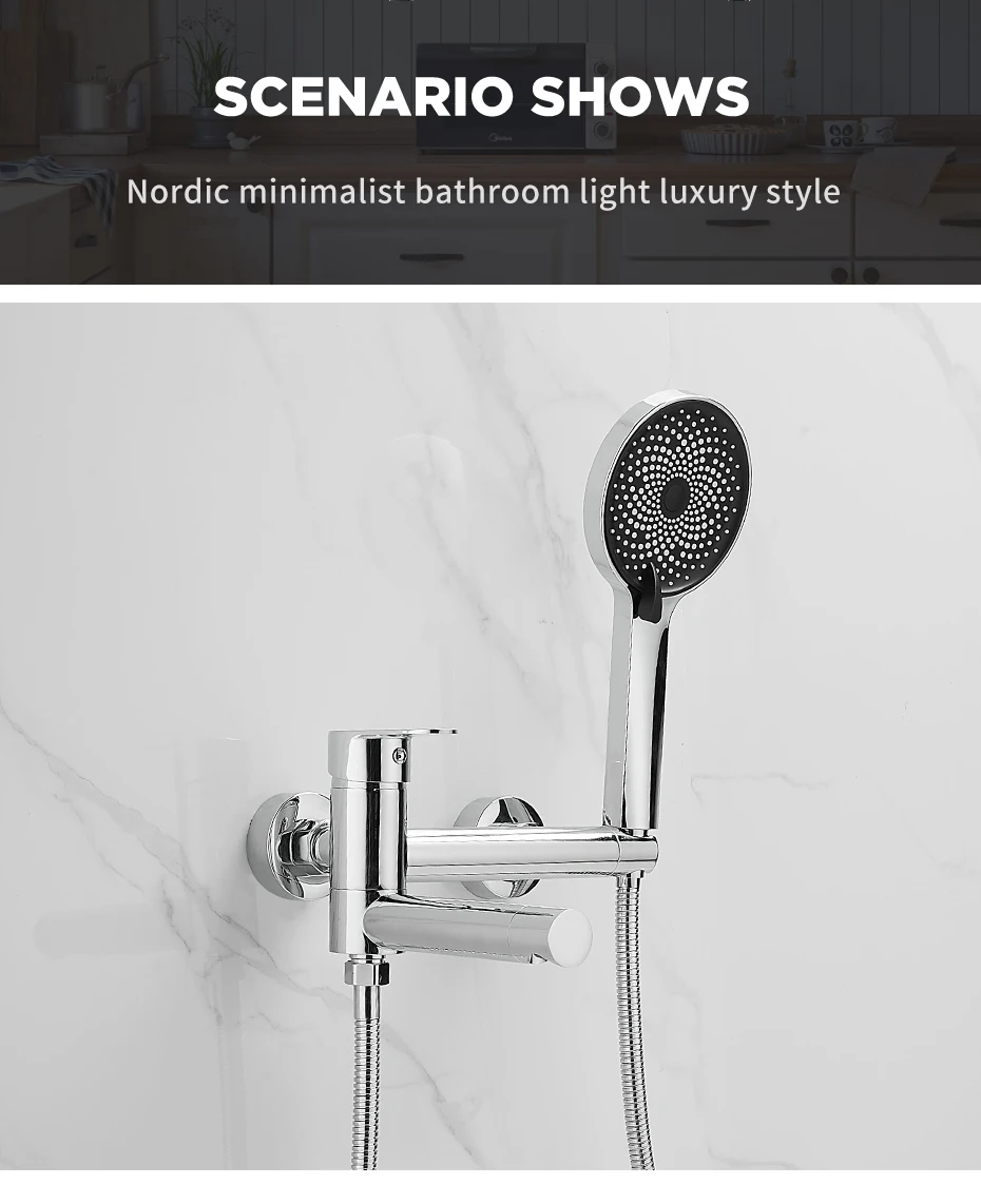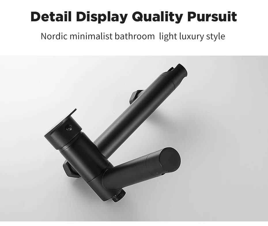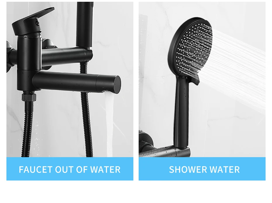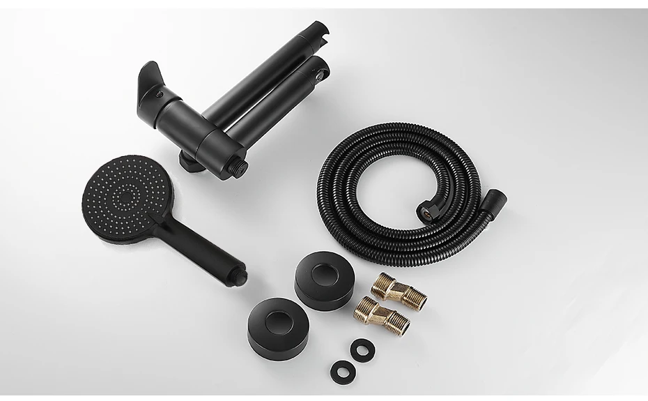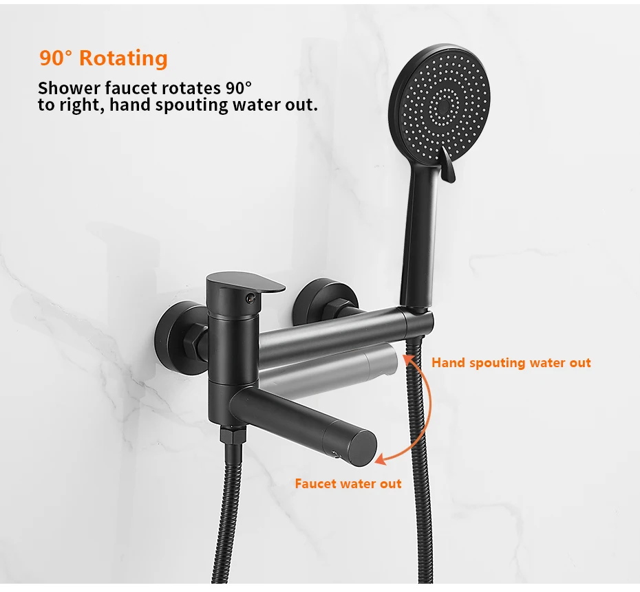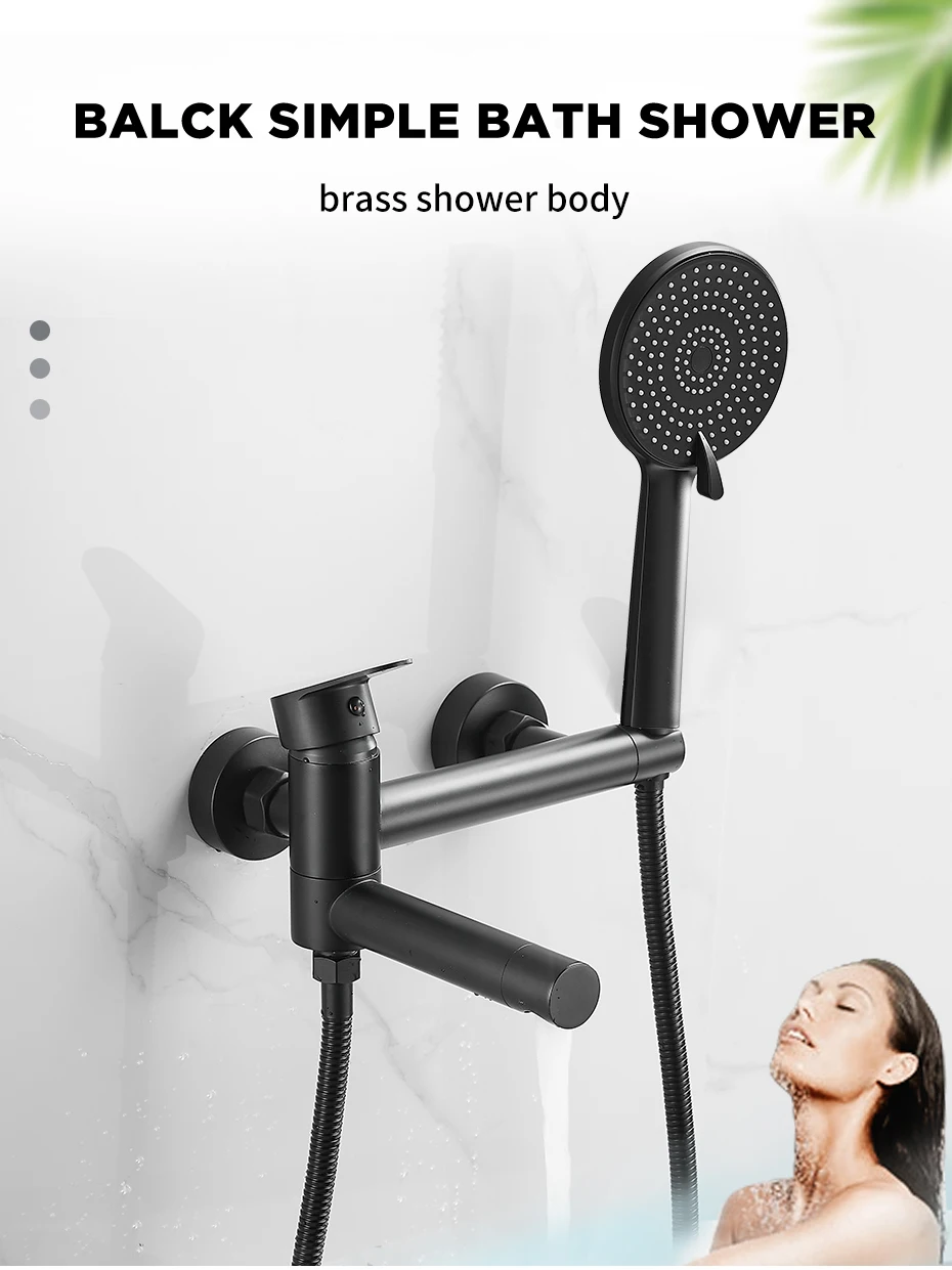 ก๊อกน้ำฝักบัวติดผนังสีดำทองเหลือง ก๊อกน้ำอ่างอาบน้ำแบบฝักบัวทรงสี่เหลี่ยม แบบมือถือ ปุ่มเดียว ก๊อกผสมน้ำในห้องน้ำสุดหรู 877910