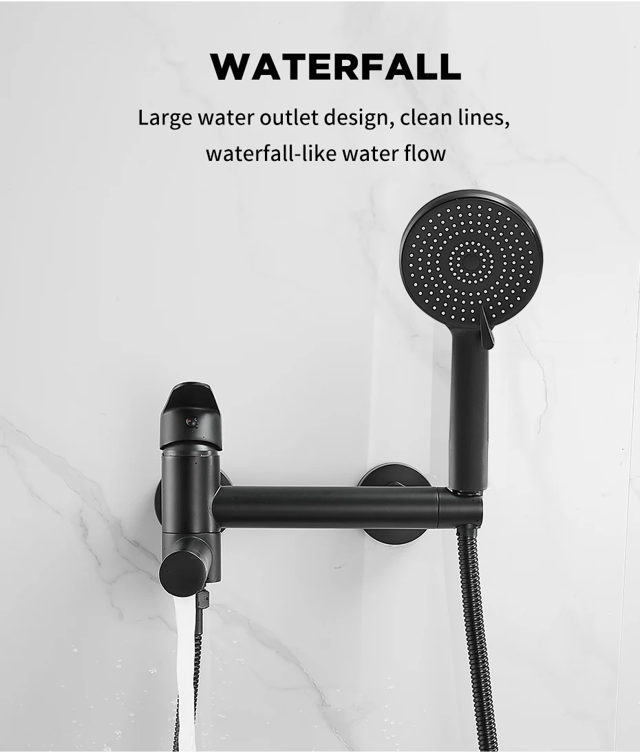 ก๊อกน้ำฝักบัว สีดำ ทองเหลือง ติดผนัง ก๊อกน้ำอ่างอาบน้ำ ฝักบัวทรงสี่เหลี่ยม แบบถือด้วยมือ ดีไซน์หรูหรา ก๊อกผสมสำหรับห้องน้ำ รุ่น WF-877910