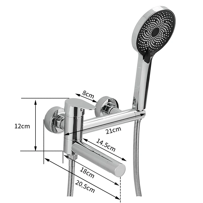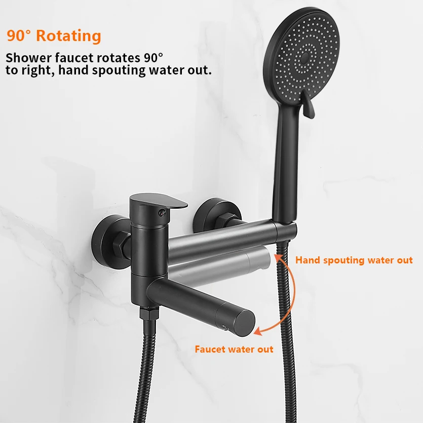 ก๊อกน้ำฝักบัวติดผนังสีดำทองเหลือง ก๊อกน้ำอ่างอาบน้ำแบบฝักบัวทรงสี่เหลี่ยม แบบมือถือ ปุ่มเดียว ก๊อกผสมน้ำในห้องน้ำสุดหรู 877910