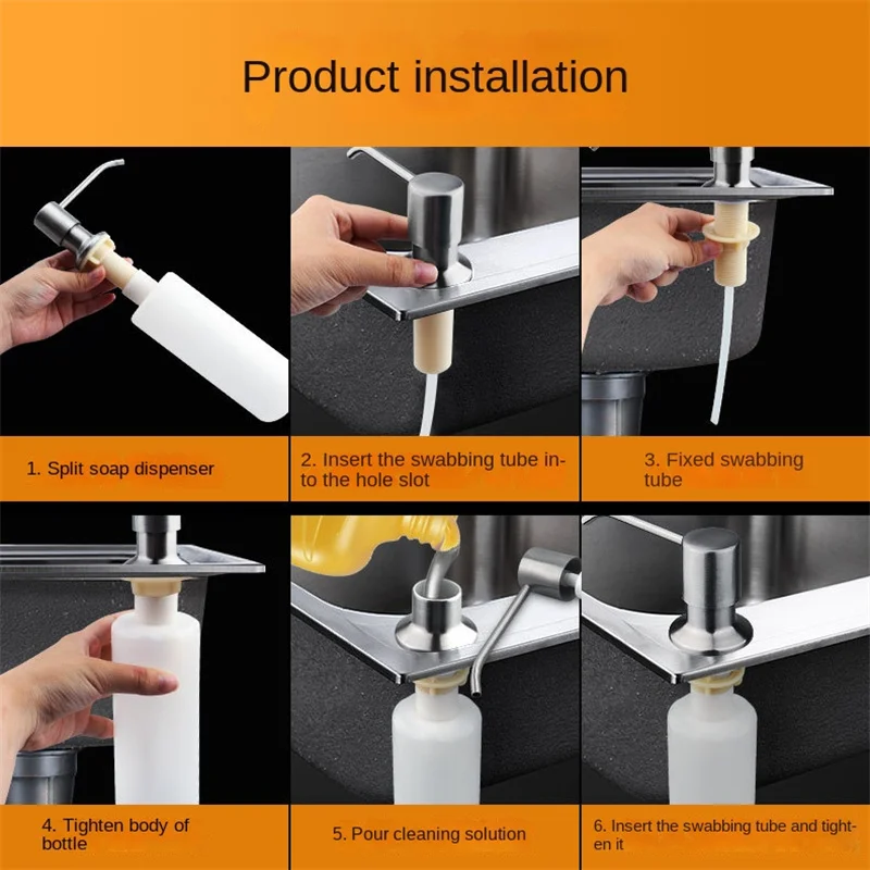 500ml จานเครื่องจ่ายสบู่อ่างล้างจานสบู่ปั๊มสแตนเลสในตัวผงซักฟอกล้างจานภาชนะของเหลว
