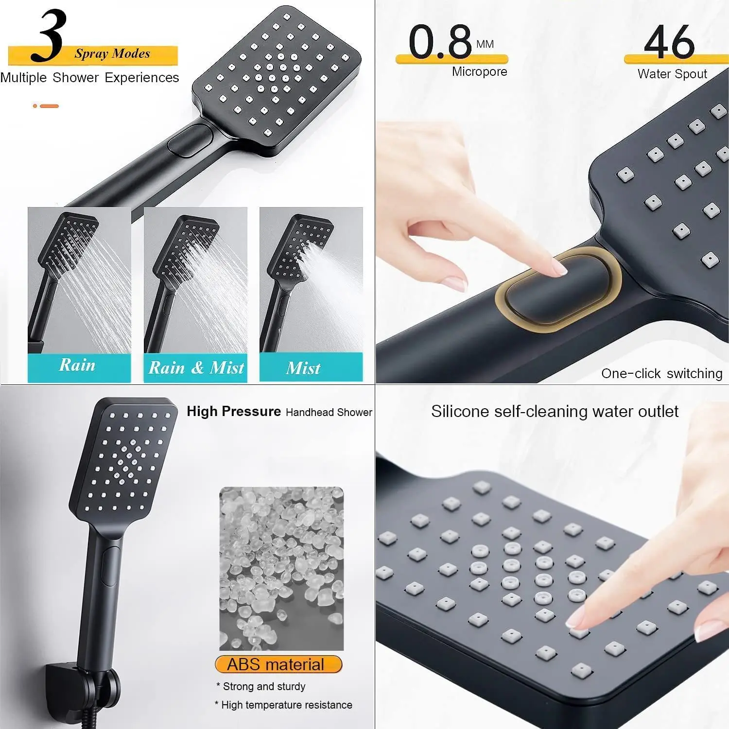 ฝักบัวอาบน้ําแรงดันสูงชุดก๊อกน้ําอ่างอาบน้ําอุปกรณ์อาบน้ําห้องน้ํา TAP ก๊อกน้ําร้อนและเย็นสีดํา/เงิน