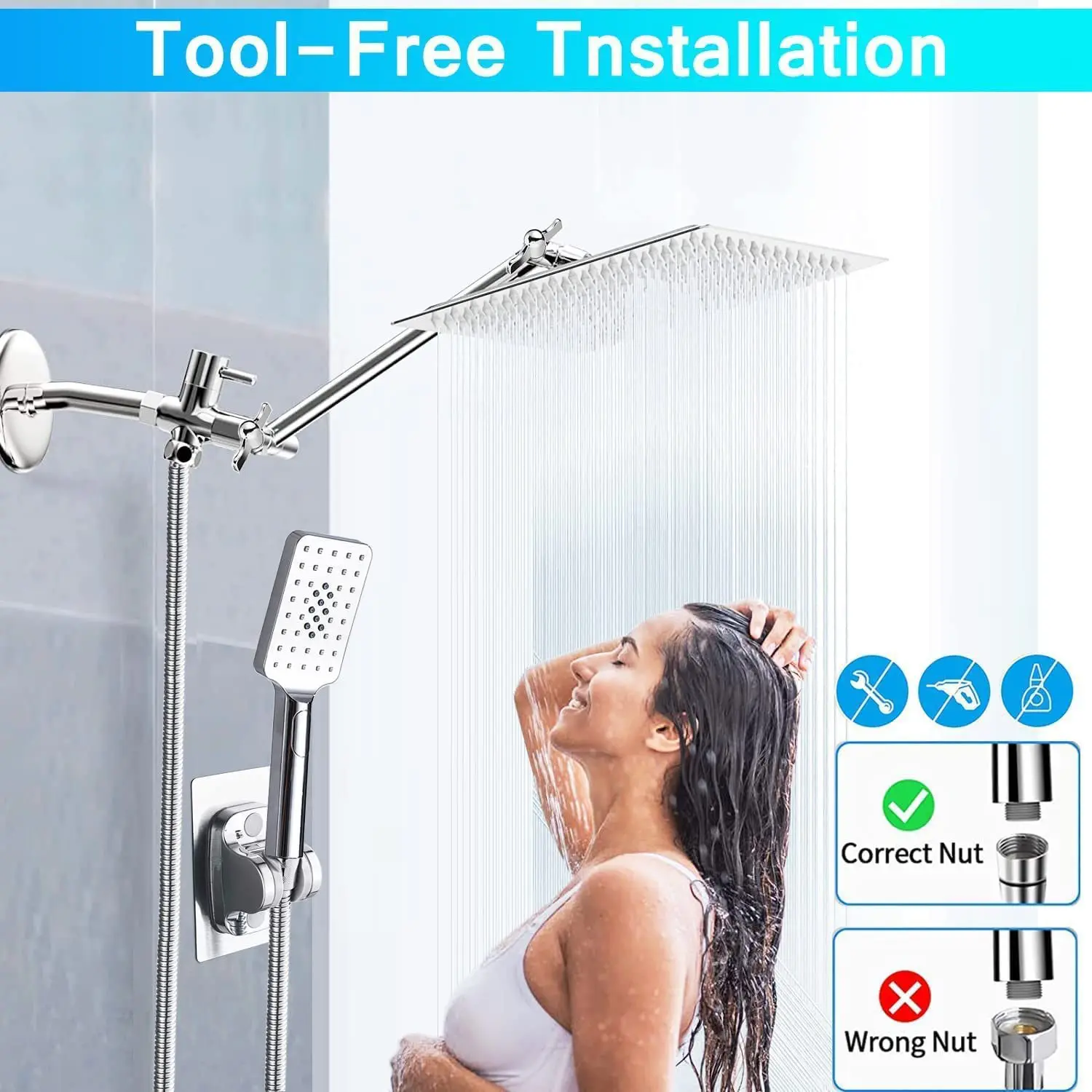 แรงดันสูงเรียบง่ายห้องน้ําระบบก๊อกน้ํา 10 นิ้วหัวฝักบัวติดผนังเย็นห้องน้ําชุดฝักบัว