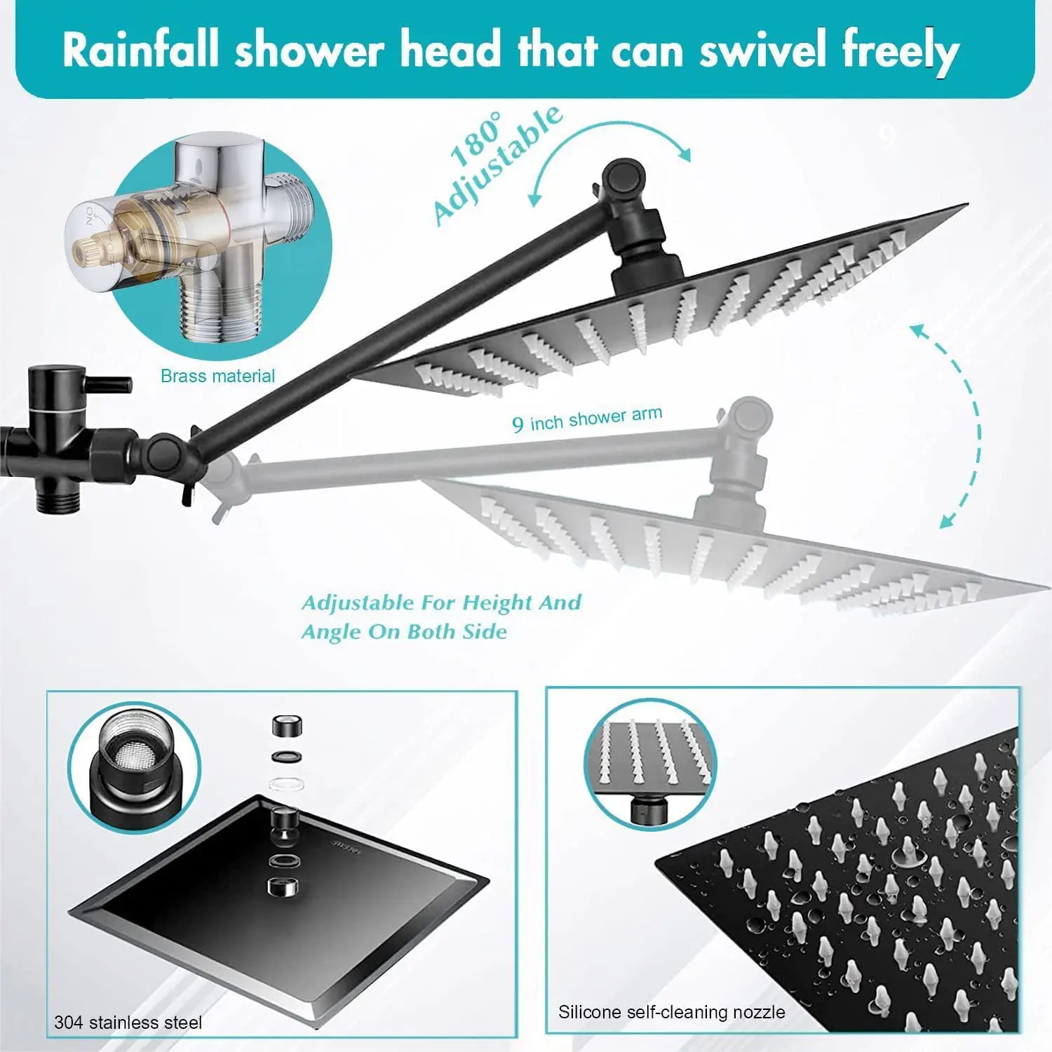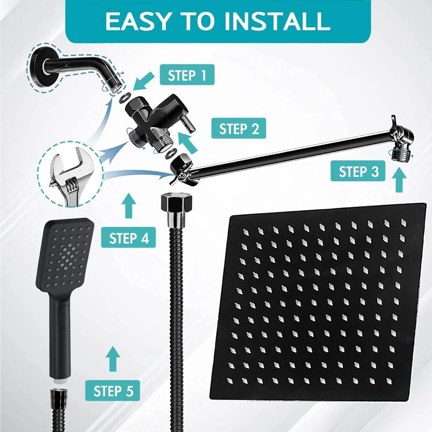 แรงดันสูงเรียบง่ายห้องน้ําระบบก๊อกน้ํา 10 นิ้วหัวฝักบัวติดผนังเย็นห้องน้ําชุดฝักบัว