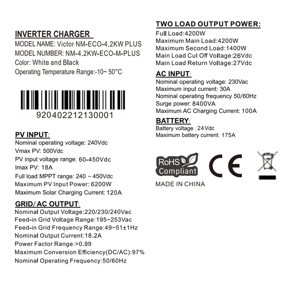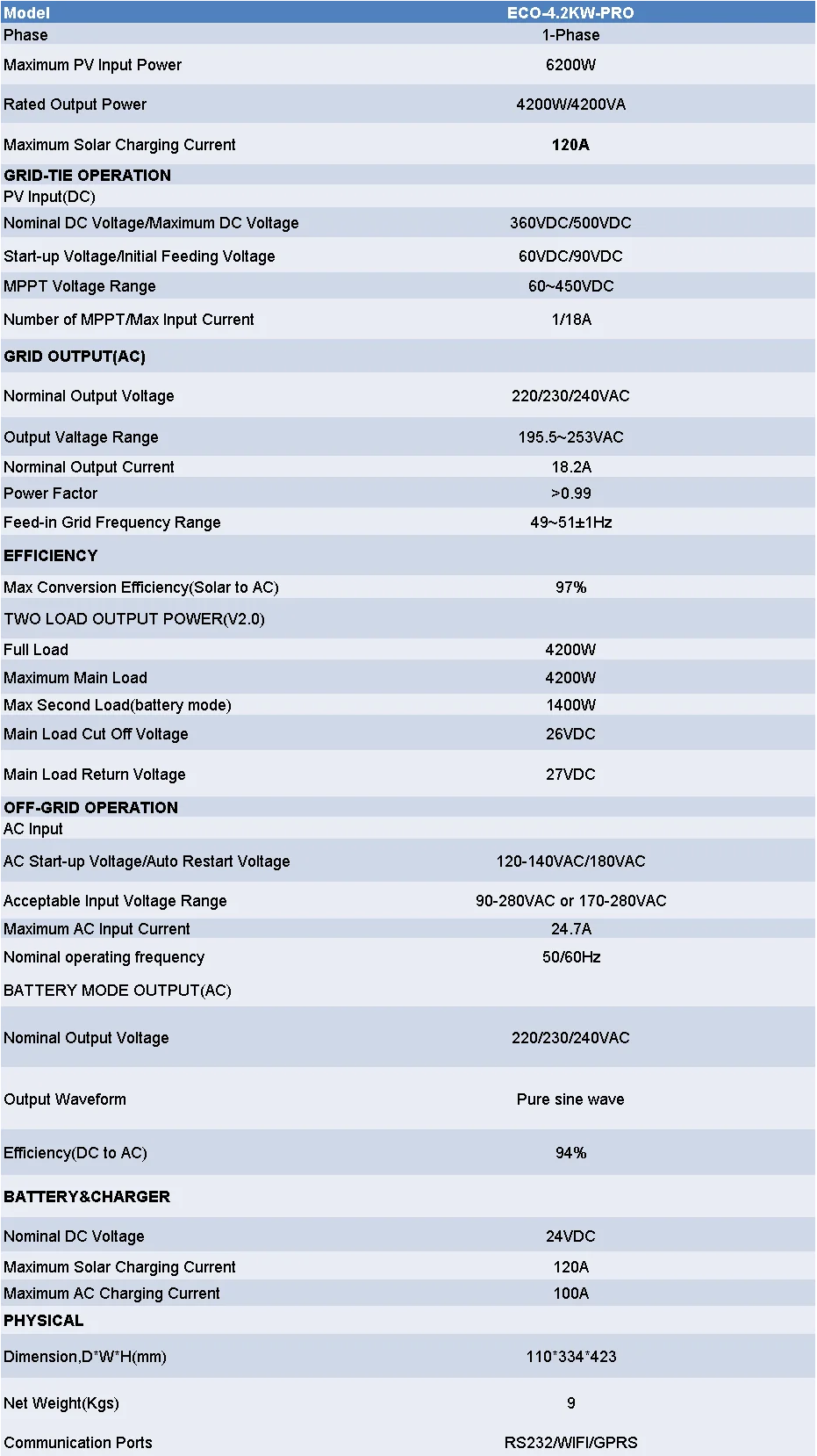 อินเวอร์เตอร์พลังงานแสงอาทิตย์ไฮบริด4200W 24V