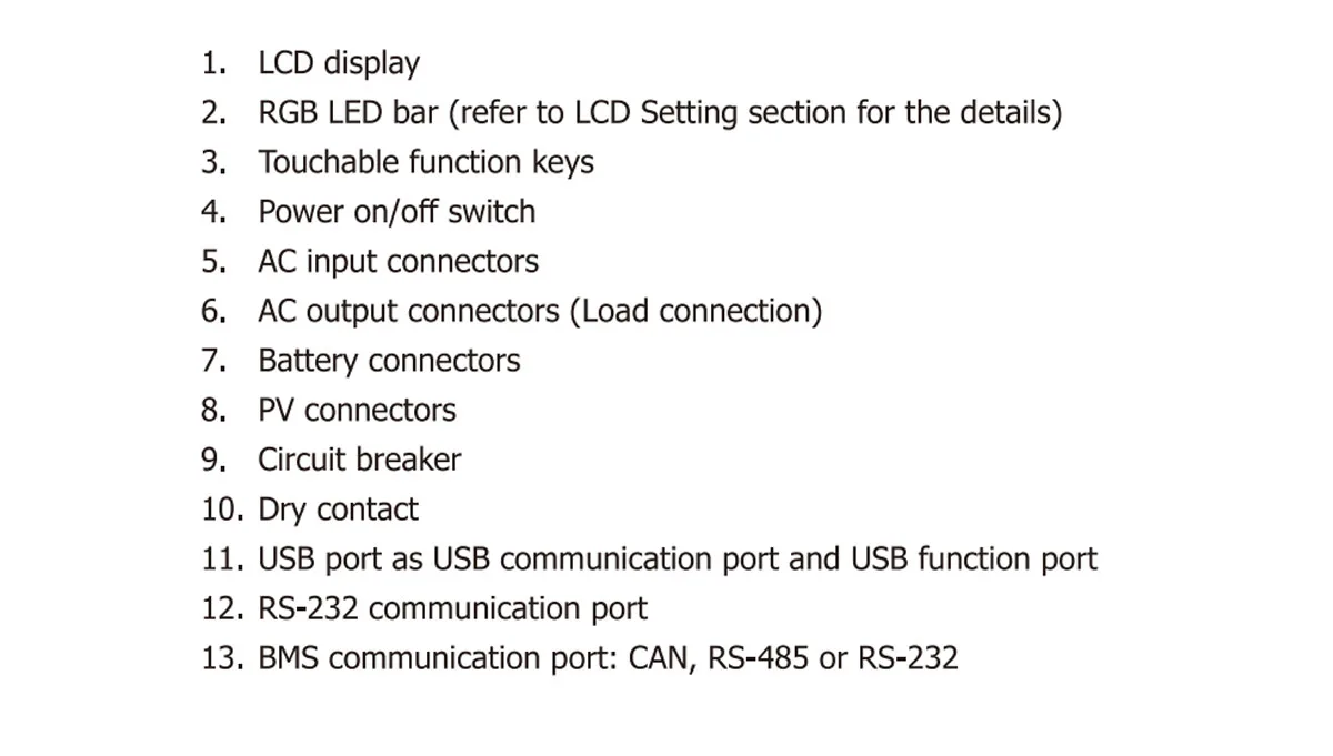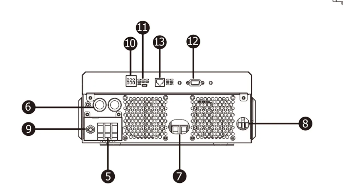 ● พอร์ตการสื่อสารที่สงวนไว้ (RS485, CAN-BUS หรือ RS232) สำหรับ BMS |
