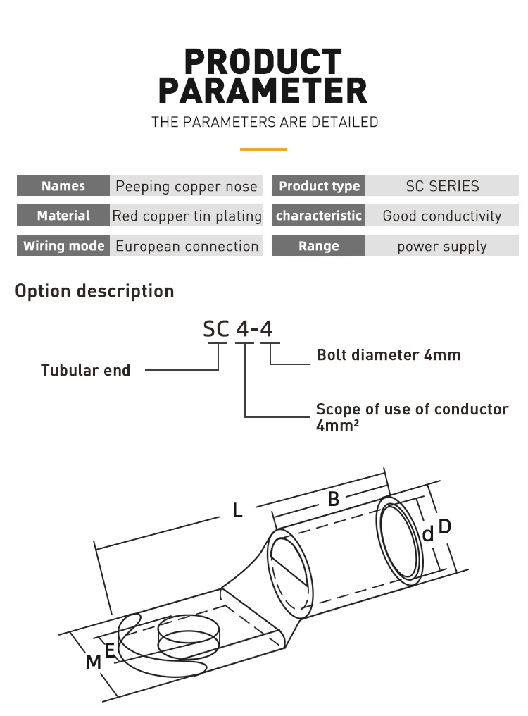 10PCS SC ประเภทลวดจมูก Terminal SC16 SC25 SC35 16-35 mm2 CRIMP ลวดจมูก Terminal สายเชื่อมต่อกระป๋อง CABLE LUG 6-2AWG