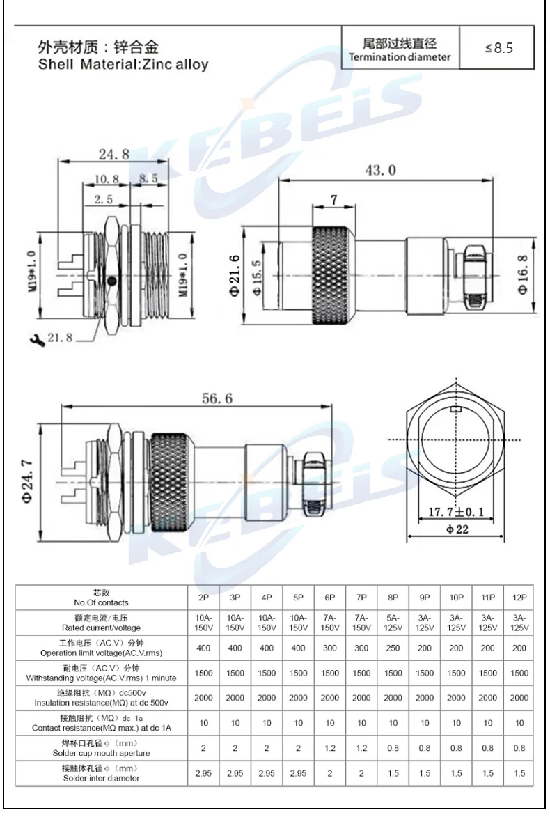 จำนวนแกน: 2/3/4/5/6/7/8/9/10/12/14Pin