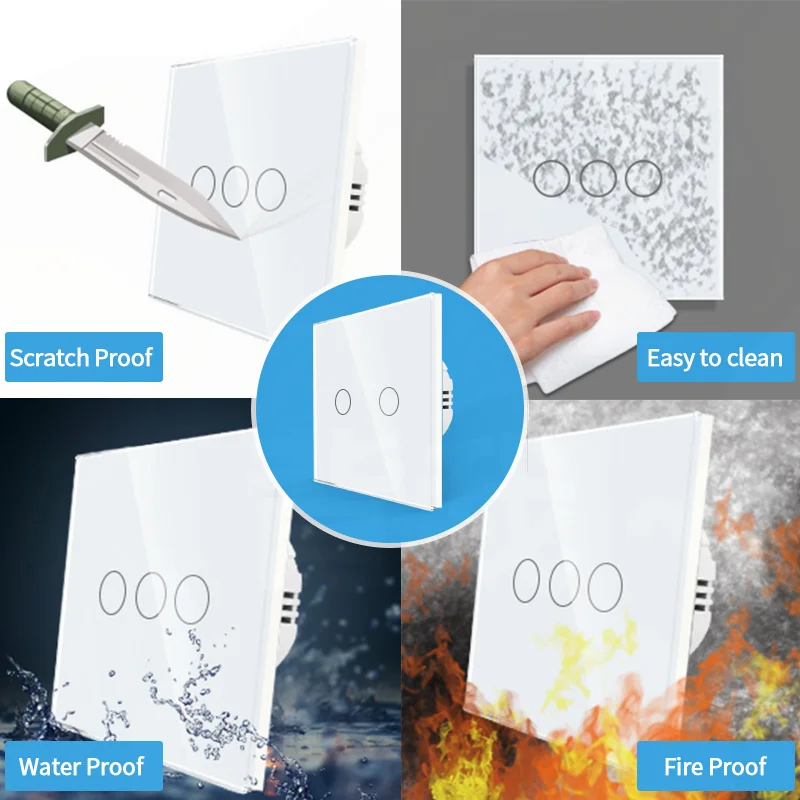 1,1/2/3 Gang สวิตช์สัมผัส 220v สวิตช์ไฟผนัง, สวิตช์บ้านอัจฉริยะมาตรฐานสหภาพยุโรป