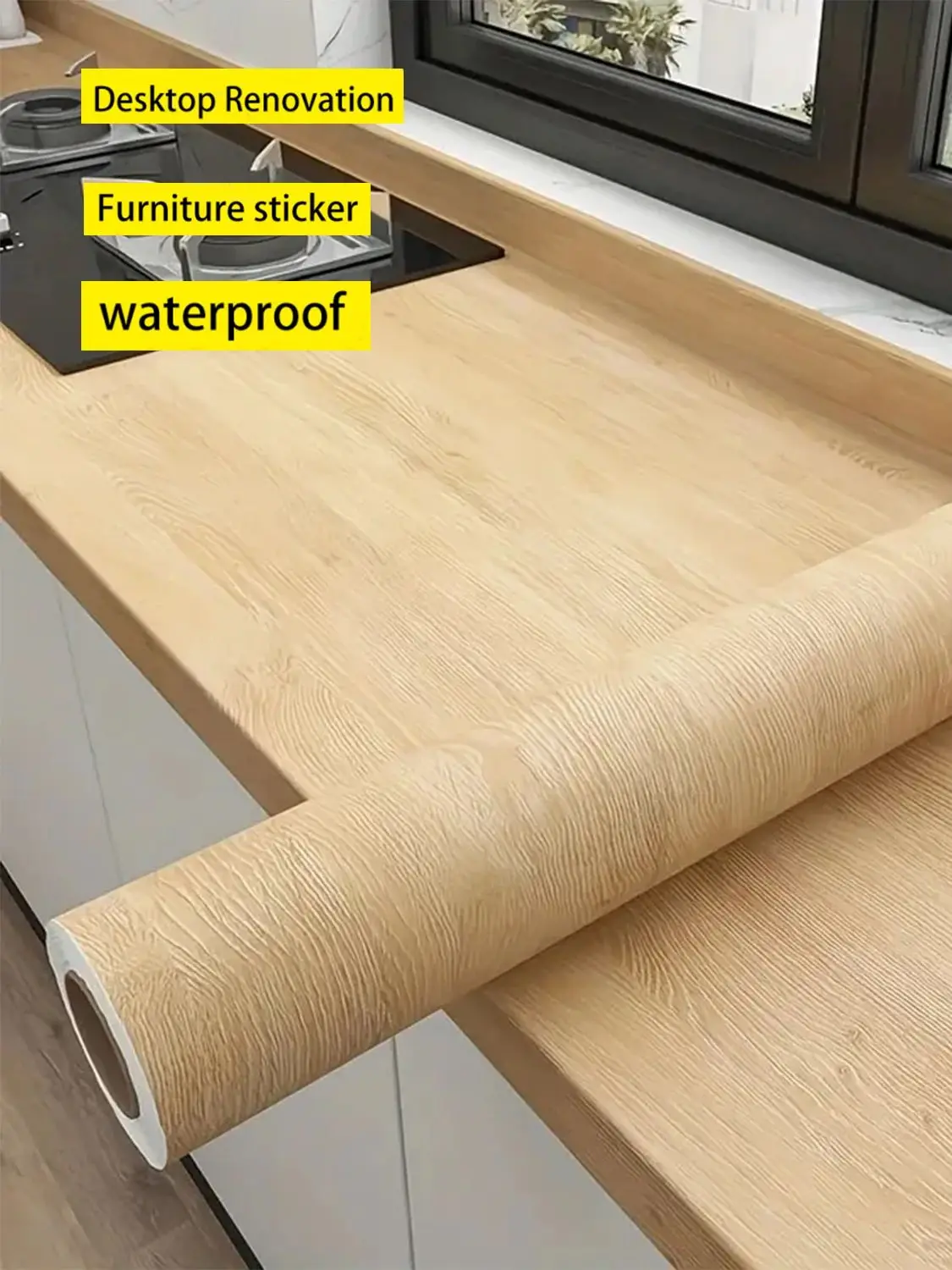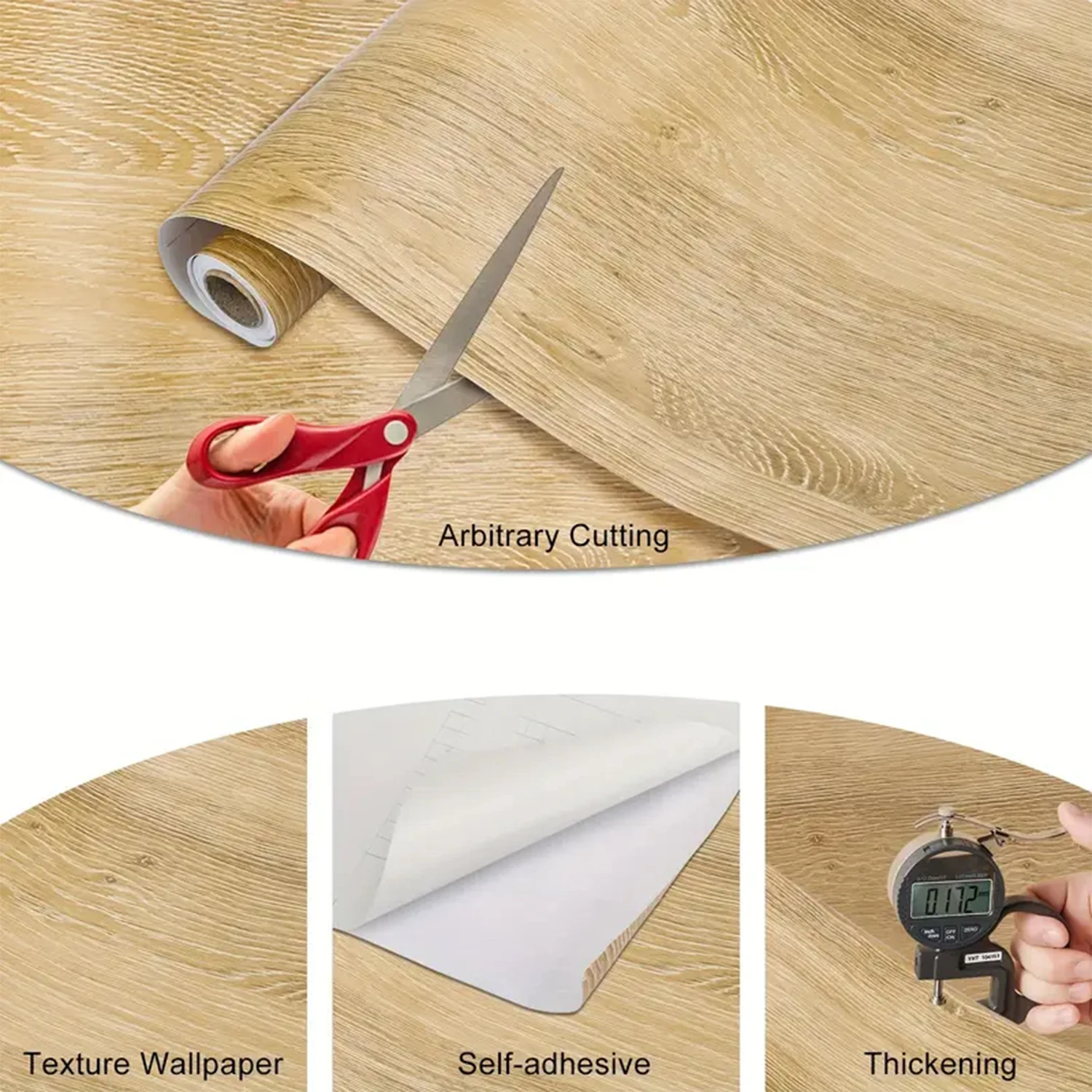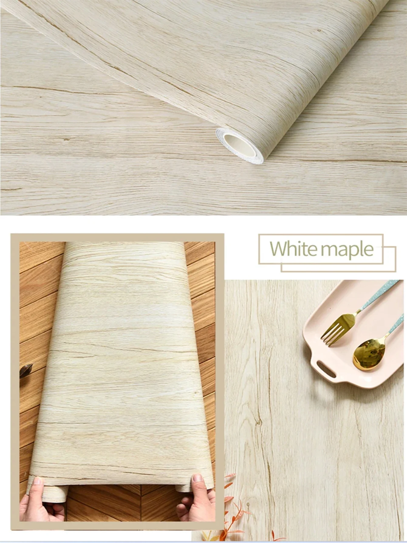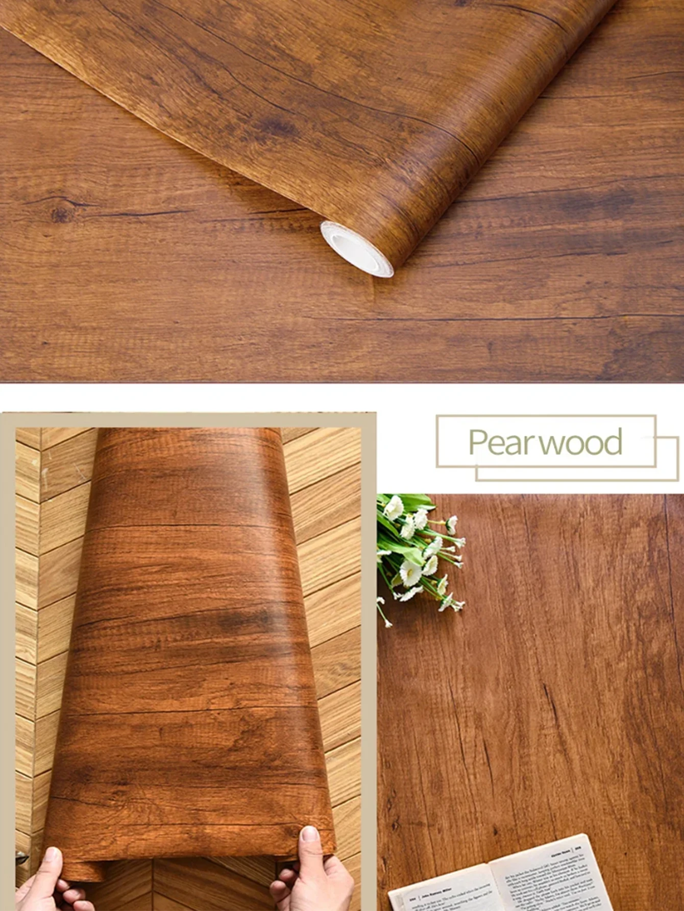วอลเปเปอร์ลายไม้ PVC 1 ม้วน สำหรับประตู ตู้เสื้อผ้า ตู้เก็บของ โต๊ะ เฟอร์นิเจอร์ กันน้ำ ติดตั้งง่ายด้วยกาวในตัว ฟิล์มตกแต่งบ้าน