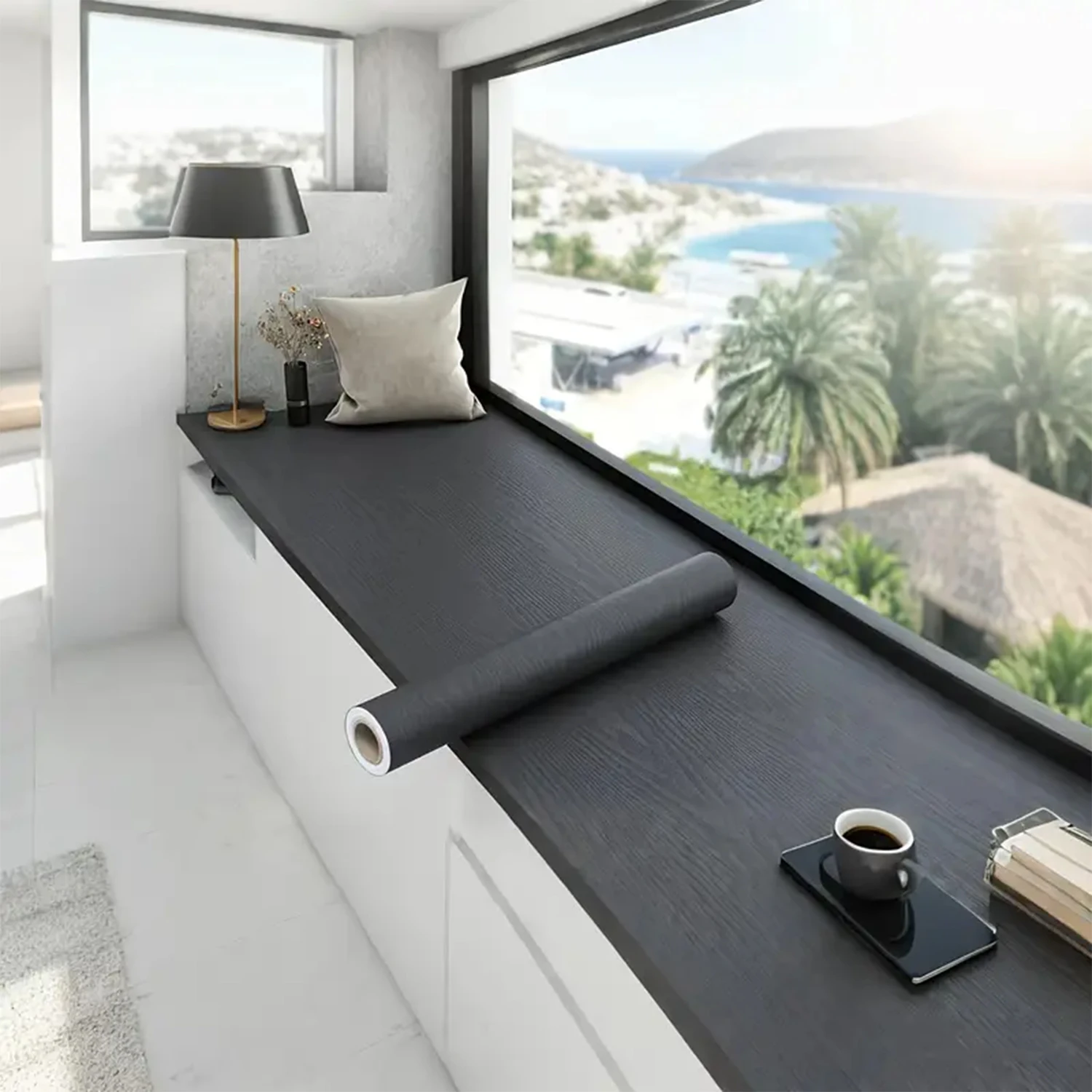 วอลล์เปเปอร์ติดด้วยตนเองกันน้ําสีดําและฟิล์มพีวีซีคล้ายไหม: เหมาะสําหรับเครื่องสําอางในห้องน้ํา คาเฟ่ และห้องนอน