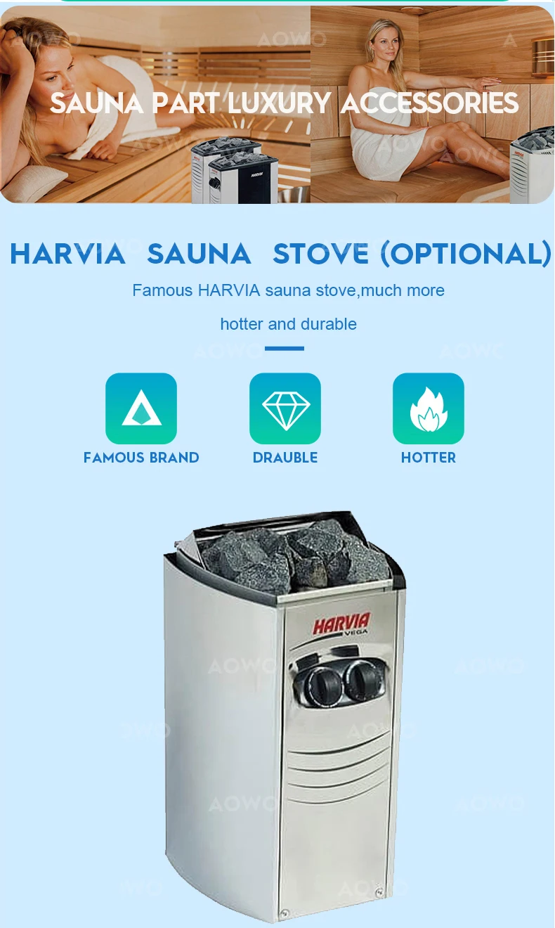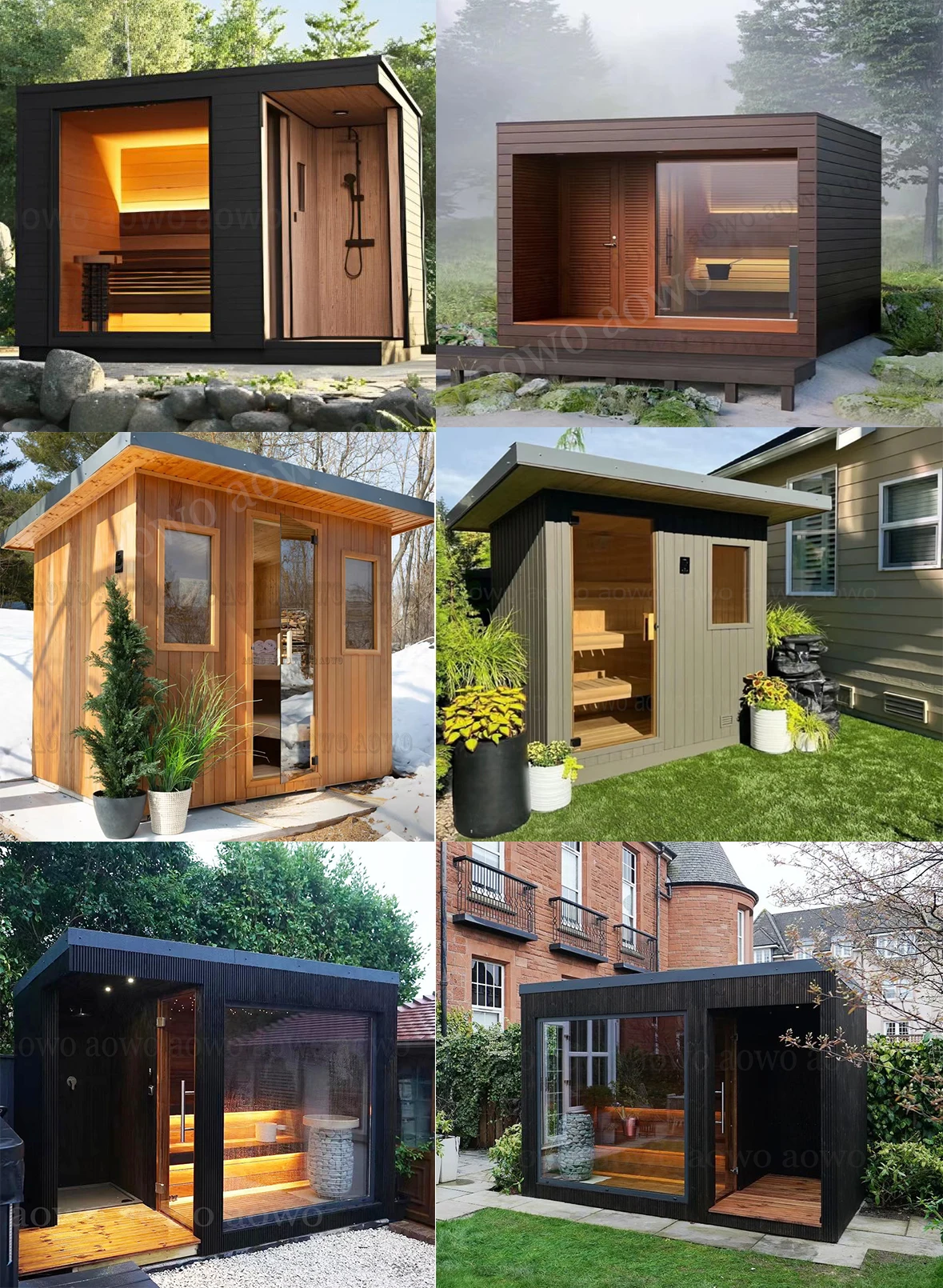 ซาวน่ากลางแจ้งแบบตุรกี อินฟราเรด ฮัมมัม และซาวน่าสำเร็จรูปแบบลอยน้ำ อ่างอาบน้ำซาวน่ากลางแจ้ง ห้องอบไอน้ำแห้งแบบใช้ฟืน สำหรับ 4 คน