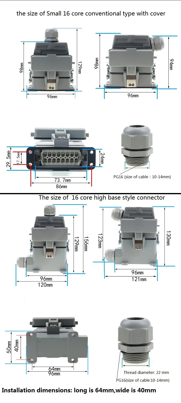 European specification 10、16 pins small heavy duty connector HA