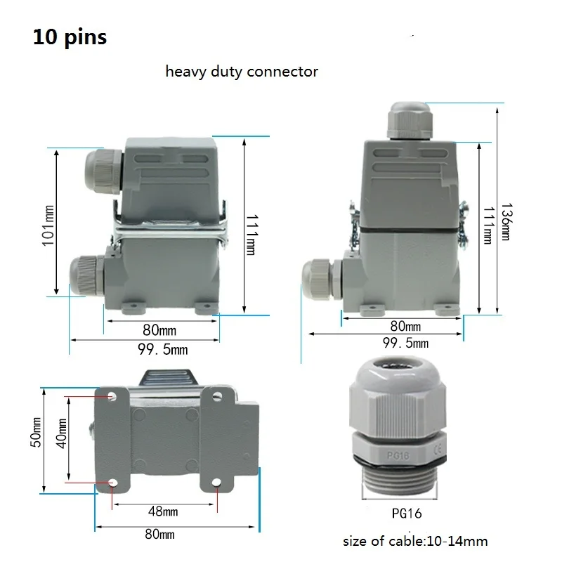 European specification 10、16 pins small heavy duty connector HA