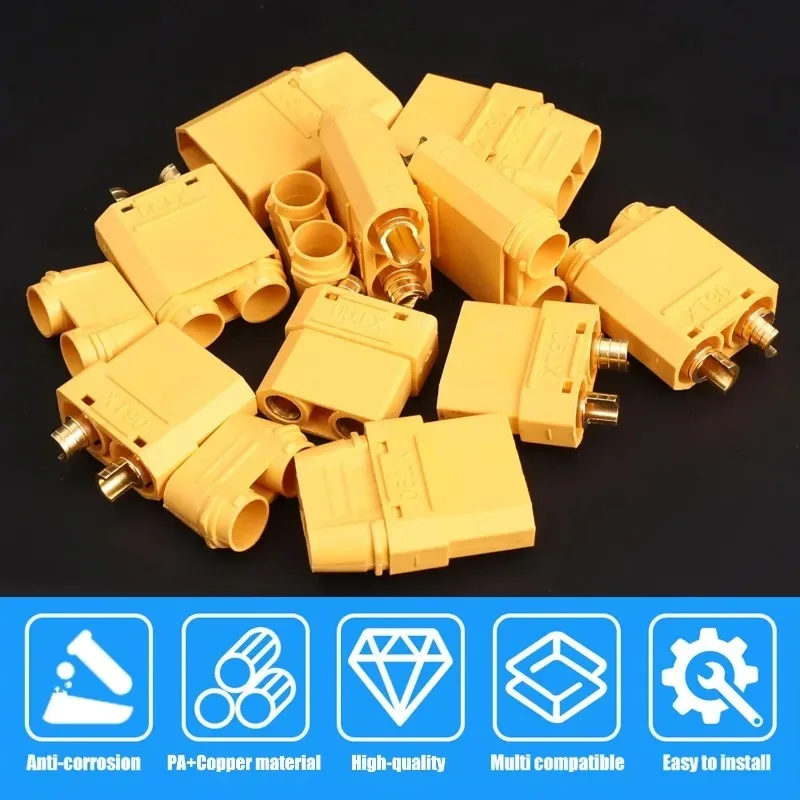 ชุดขั้วต่อแบตเตอรี่ XT90 ตัวผู้ ตัวเมีย 1/10 ชุด สำหรับแบตเตอรี่ลิเธียมโพลิเมอร์ รุ่นโดรน อุปกรณ์เสริมเครื่องบิน