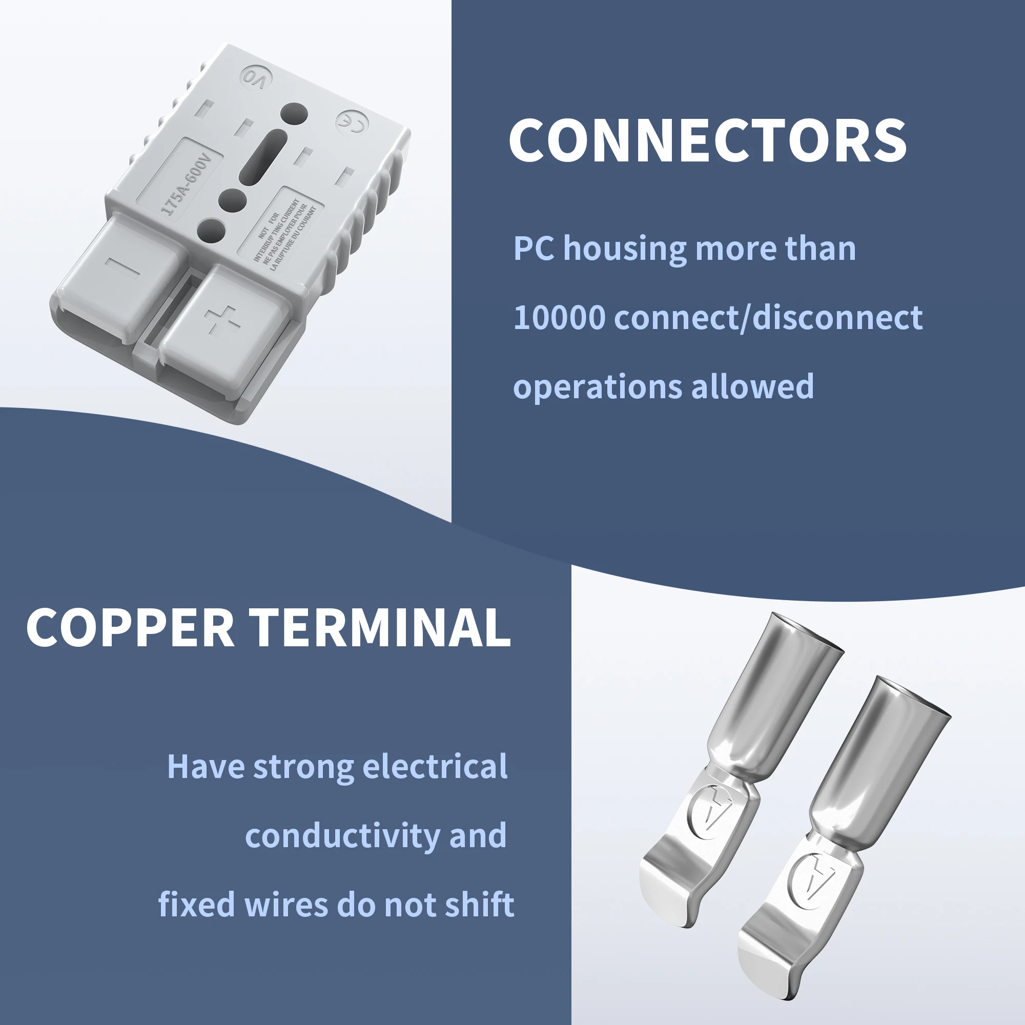 ผลิตภัณฑ์ที่มีคุณภาพ: ปลั๊กขั้วต่อด่วนของแบตเตอรี่ทําจากวัสดุหน่วงไฟ PC ที่เป็นของแข็งขาเทอร์มินัลใช้การชุบทองแดงเงินซึ่งมีค่าการนําไฟฟ้าที่ดีและรับประกันแรงดันไฟฟ้าและกระแสที่เสถียร ความต่อเนื่องที่สมบูรณ์แบบ มีความต้านทานต่อสภาพแวดล้อมที่ไม่ดีได้ดี