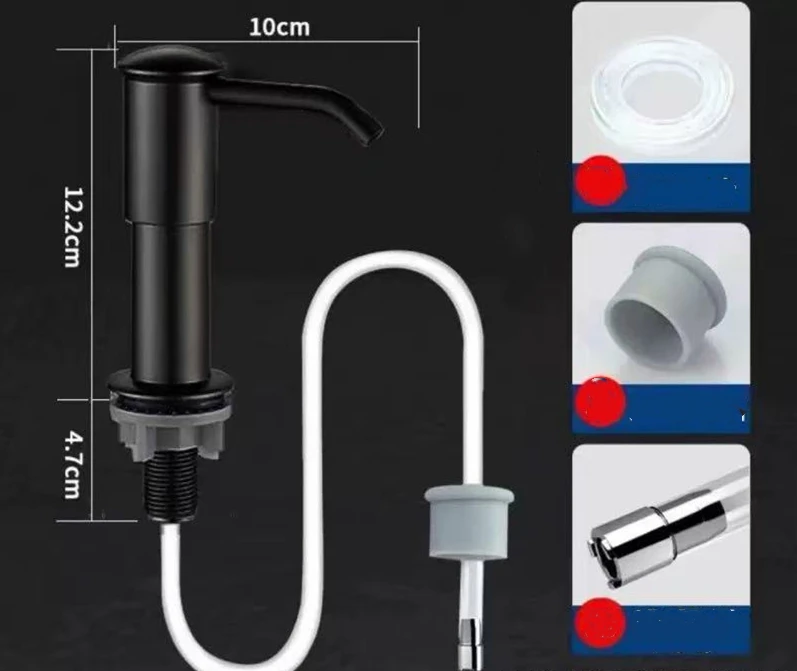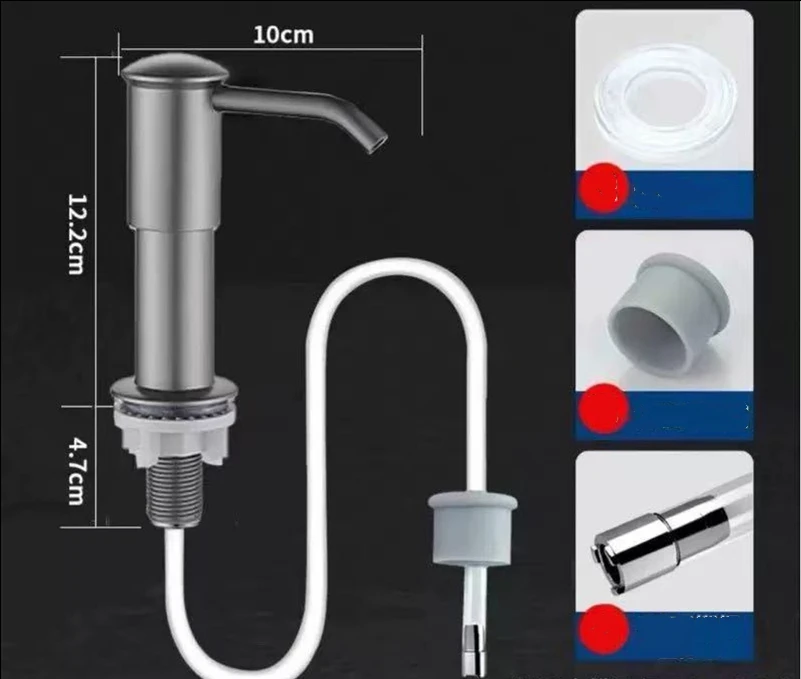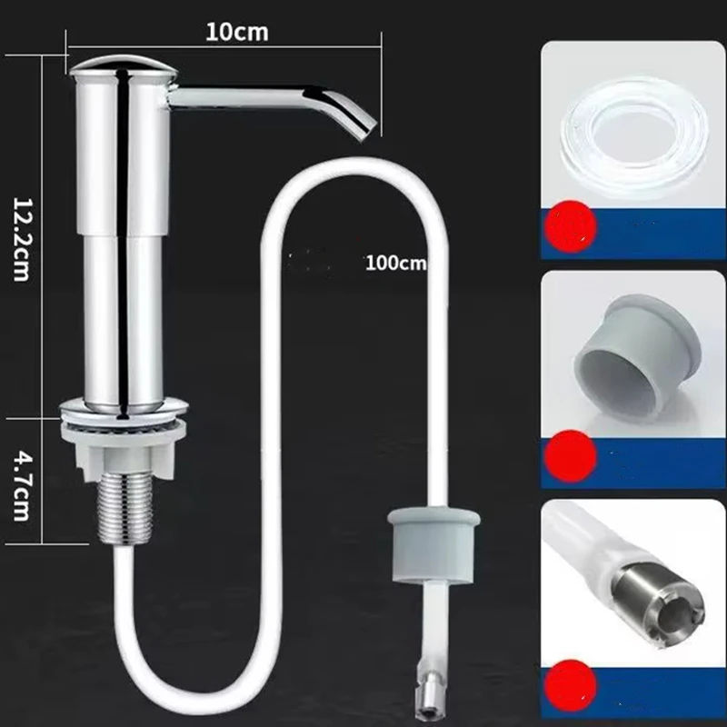 เคาน์เตอร์ครัวเครื่องจ่ายจานพร้อมท่อขยายมือกดสบู่เหลวปั๊มพลาสติกเครื่องจ่ายสบู่สําหรับอุปกรณ์อ่างล้างจาน