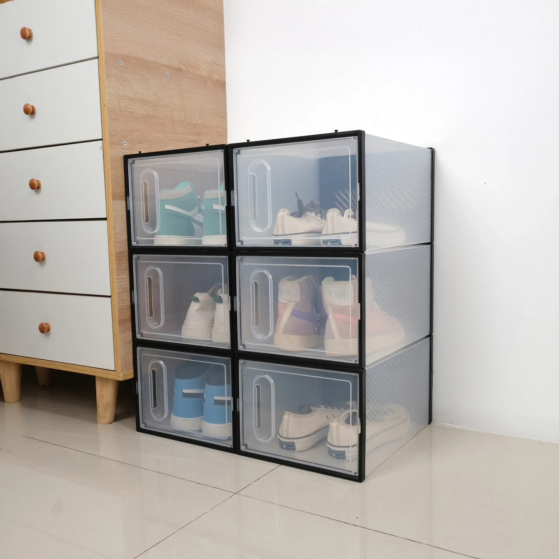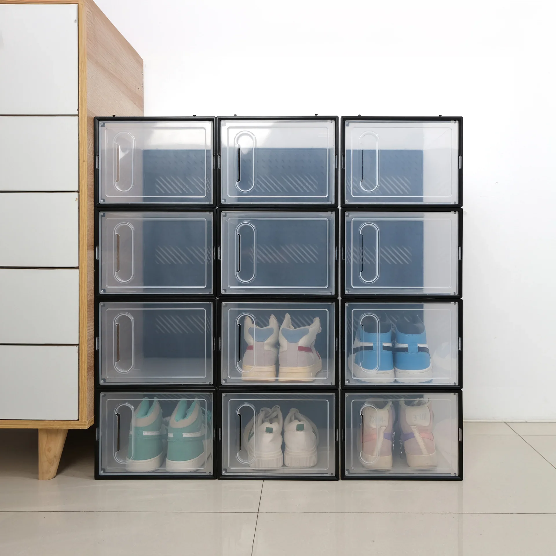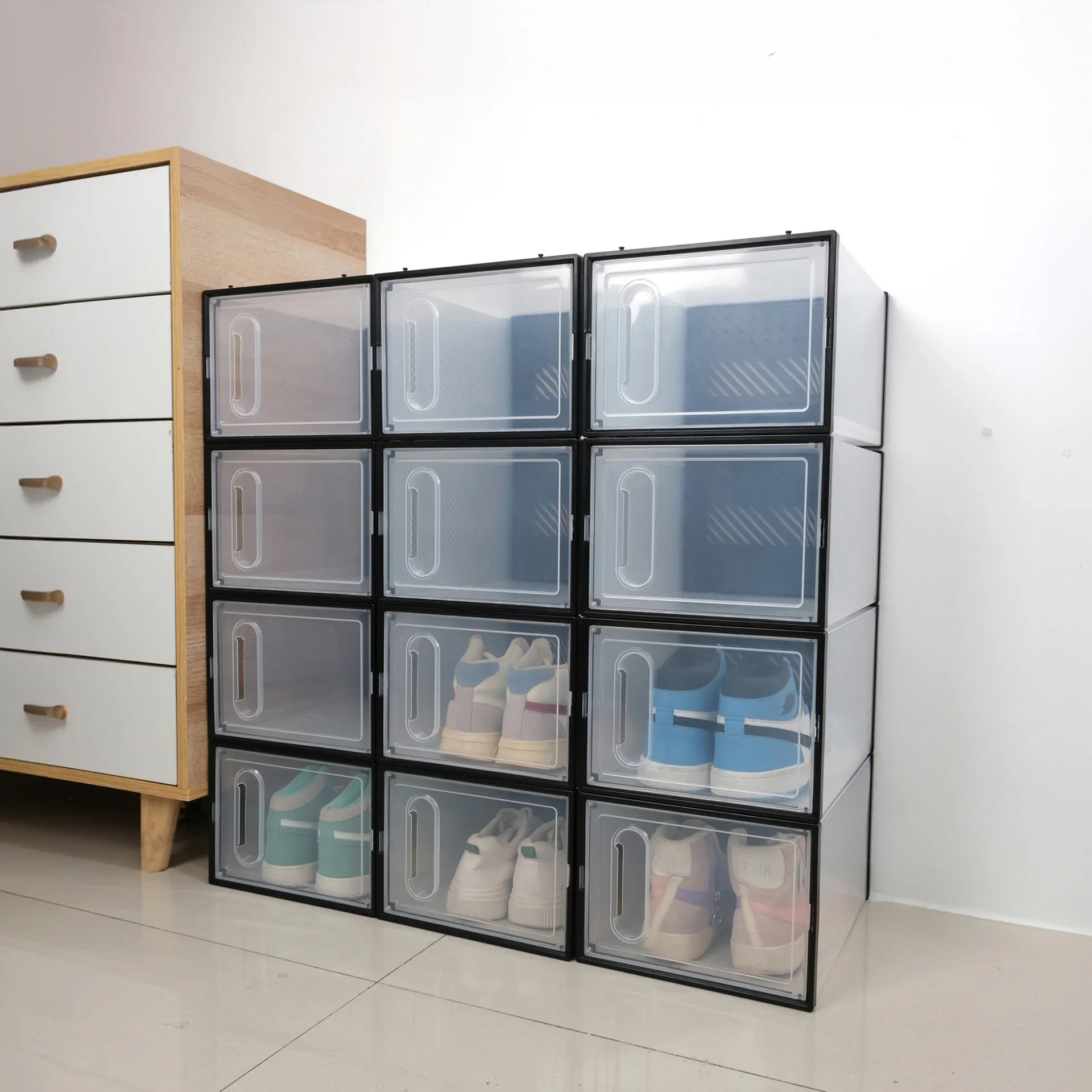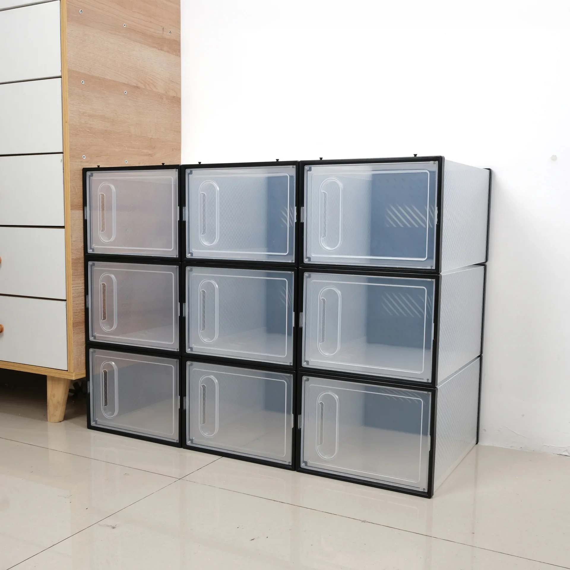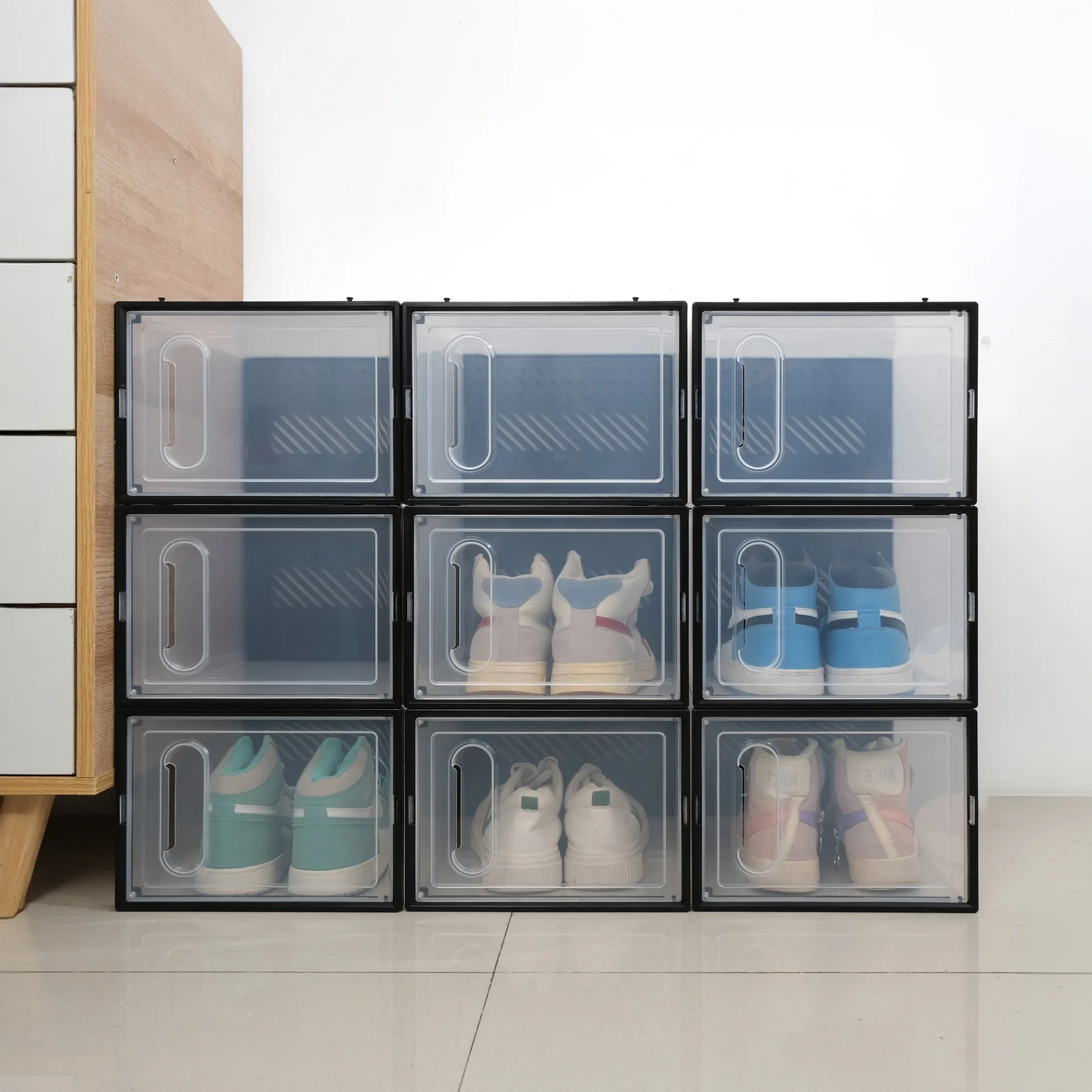 หนาพับกันฝุ่นกล่องเก็บรองเท้าโปร่งใสกล่องรองเท้าOrganizer STACKABLEรวมรองเท้าผ้าใบตู้ขาย