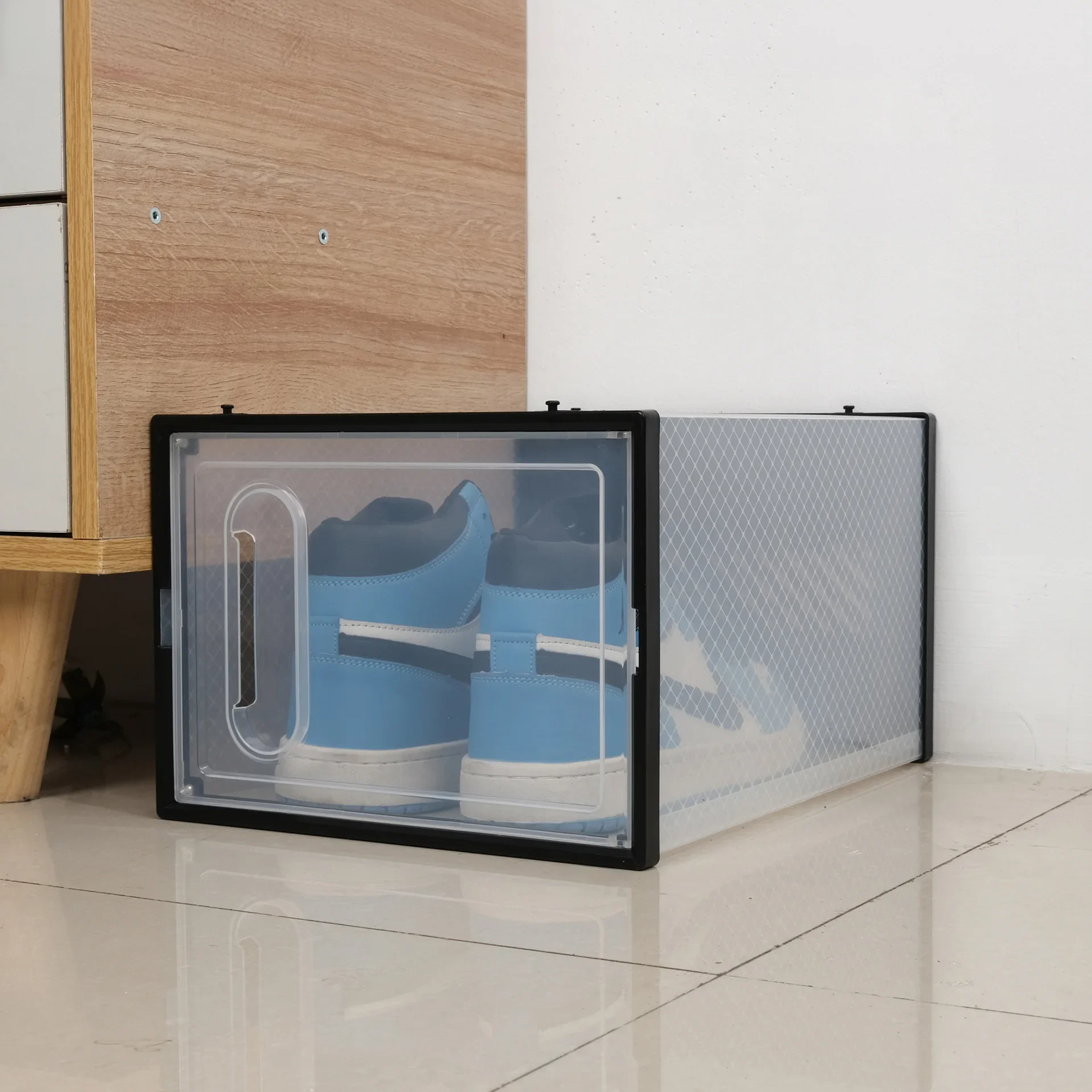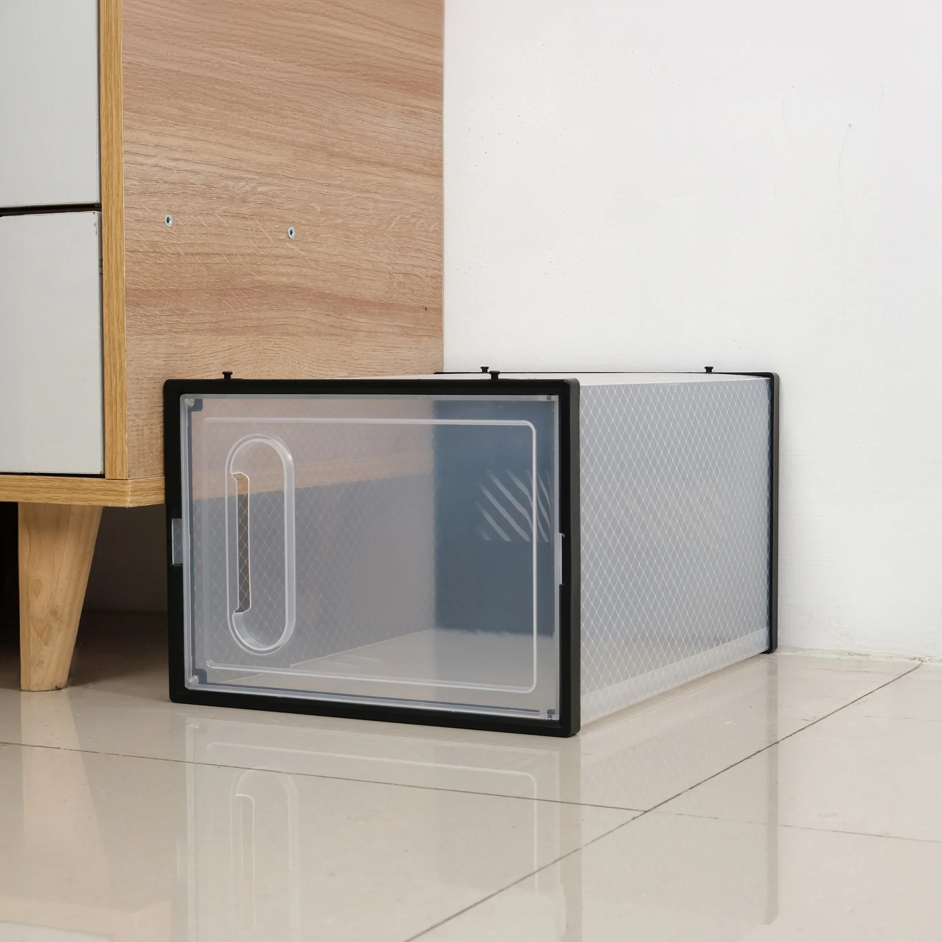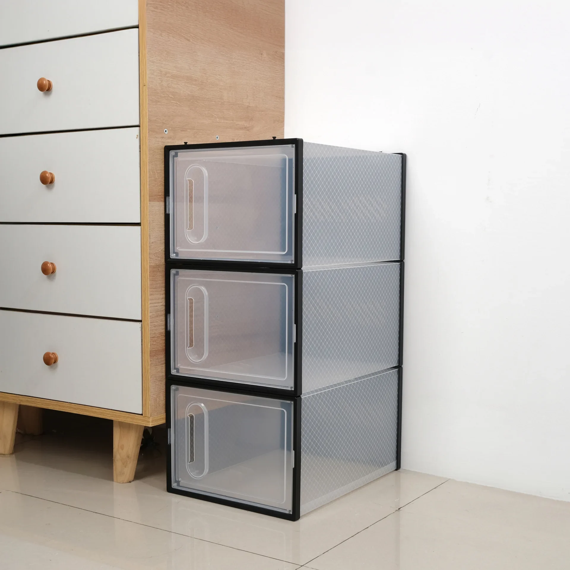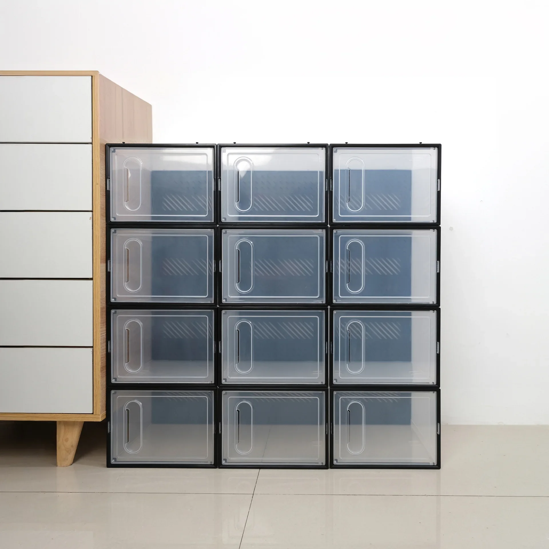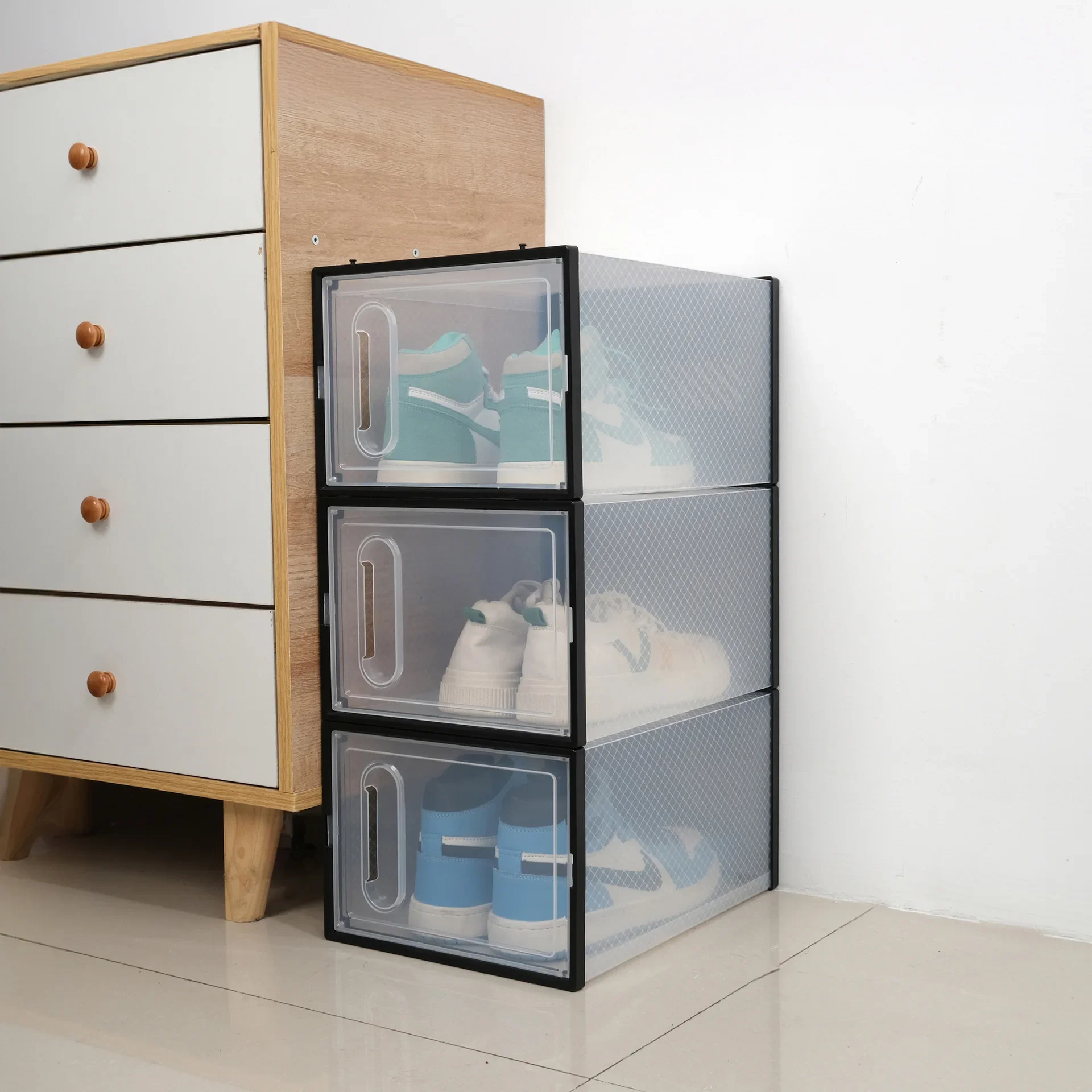 หนาพับกันฝุ่นกล่องเก็บรองเท้าโปร่งใสกล่องรองเท้าOrganizer STACKABLEรวมรองเท้าผ้าใบตู้ขาย