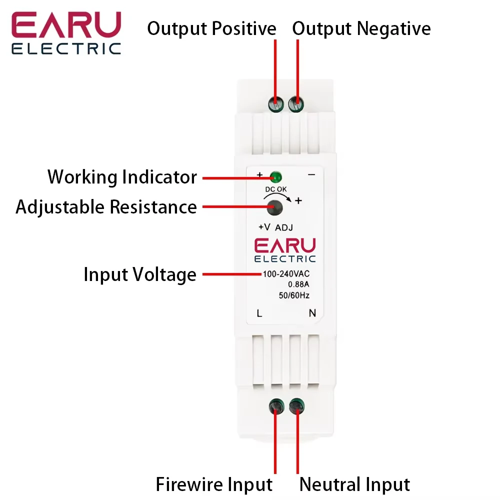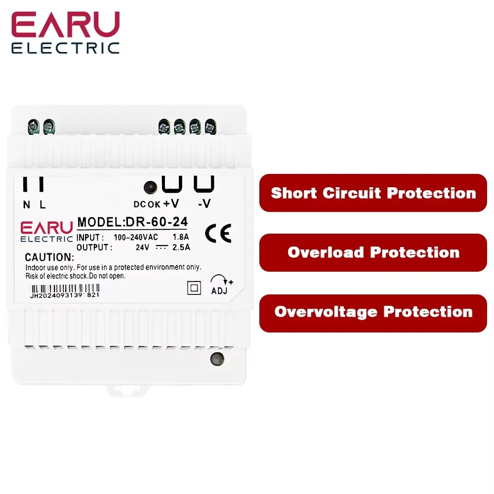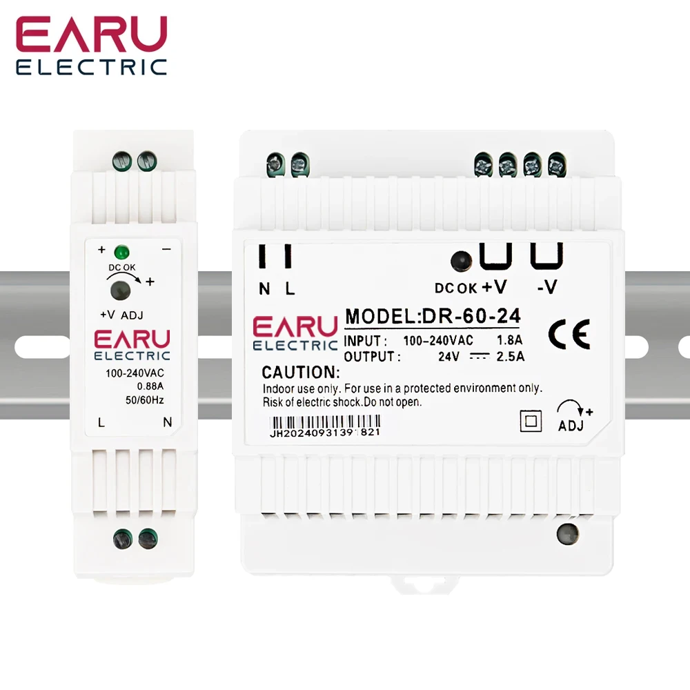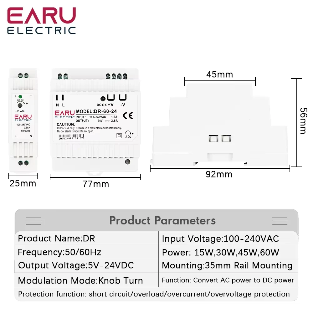 15W 30W 45W 60W เอาต์พุตเดี่ยว DC 5V 12V 24V อุตสาหกรรม Din Rail แหล่งจ่ายไฟอินพุตสวิทช์ 100-240VAC DR-15 DR-30 DR-45 DR-60