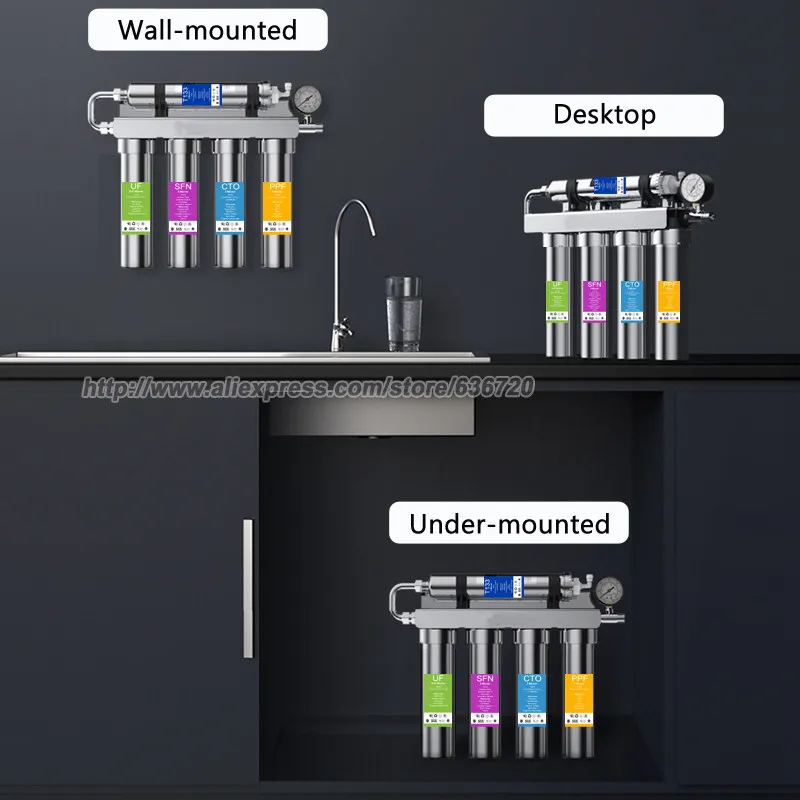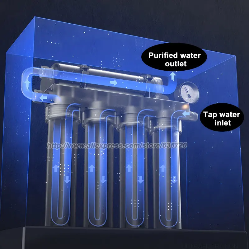การกรองพิเศษของสเตนเลสสตีล 0.01μm ใต้ระบบกรองน้ําอ่างล้างจาน ลดคลอรีน 99.99% รสชาติและกลิ่นไม่ดี