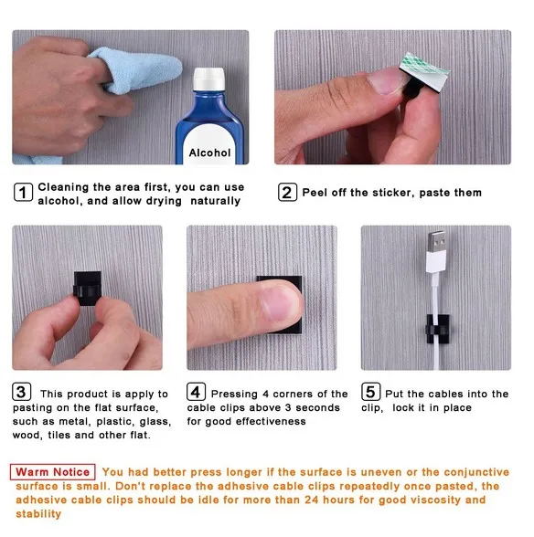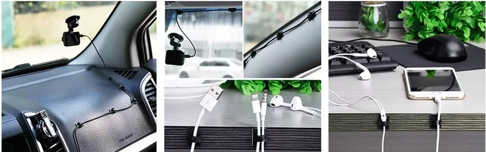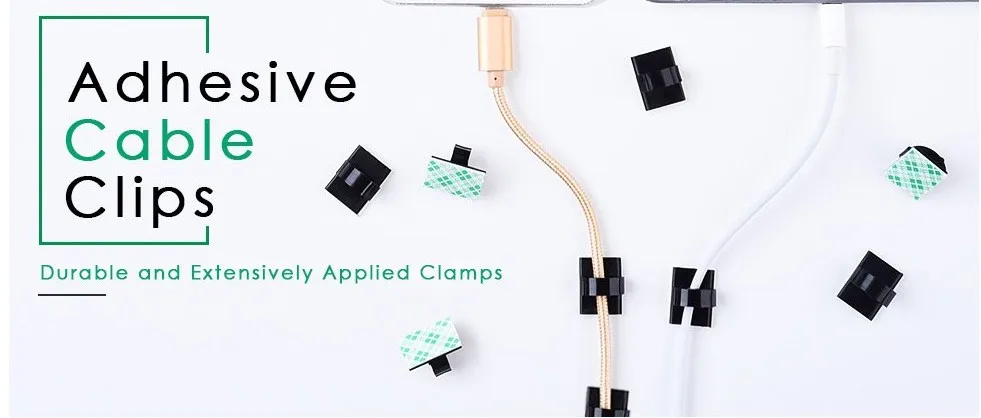 การจัดระเบียบสายเคเบิล: ตัวจัดระเบียบคลิปหนีบสายยึดติดกับพื้นผิวเรียบอย่างแน่นหนาและช่วยให้สถานที่ของคุณเรียบร้อยและเป็นระเบียบ ปราศจากสายไฟรบกวน สภาพแวดล้อมที่สะอาดและเป็นระเบียบทําให้คุณสบายใจ