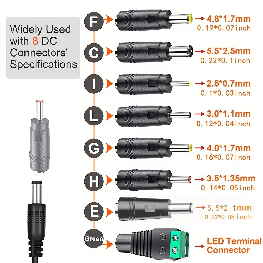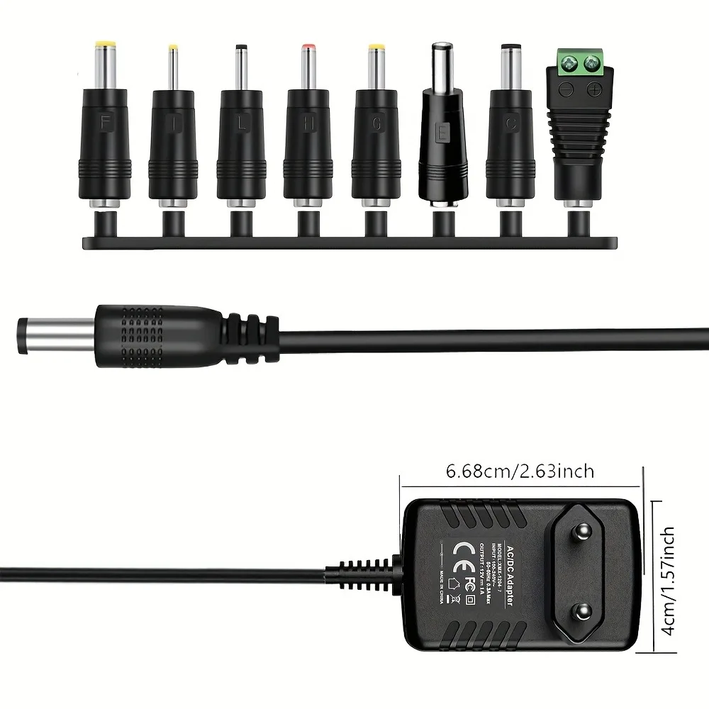 อะแดปเตอร์จ่ายไฟ DC 5V 6V 9V 12V 24V 1A 2A 3A อะแดปเตอร์จ่ายไฟ 8V 10V 15V 2A 3A พร้อมปลั๊ก DC แบบ EU และ US มาพร้อมหัวต่อ 8 ชิ้น