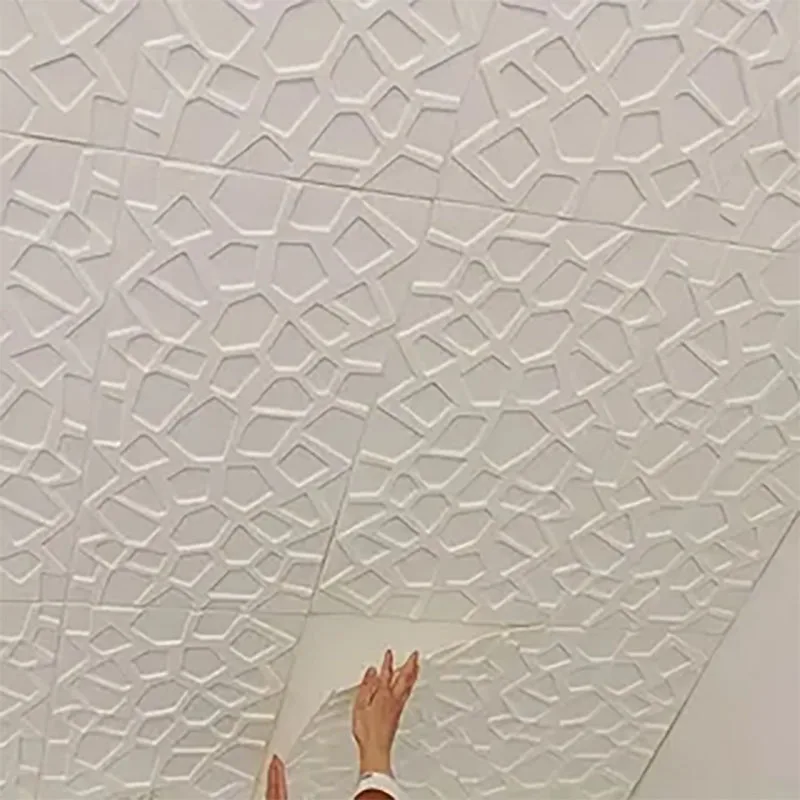 ตกแต่งความชื้นกันน้ําป้องกันการเปรอะเปื้อนป้องกันการชนกันมีกาวในตัว 3D วอลล์เปเปอร์สไตล์โมเดิร์น 35*35 ซม. เพดาน