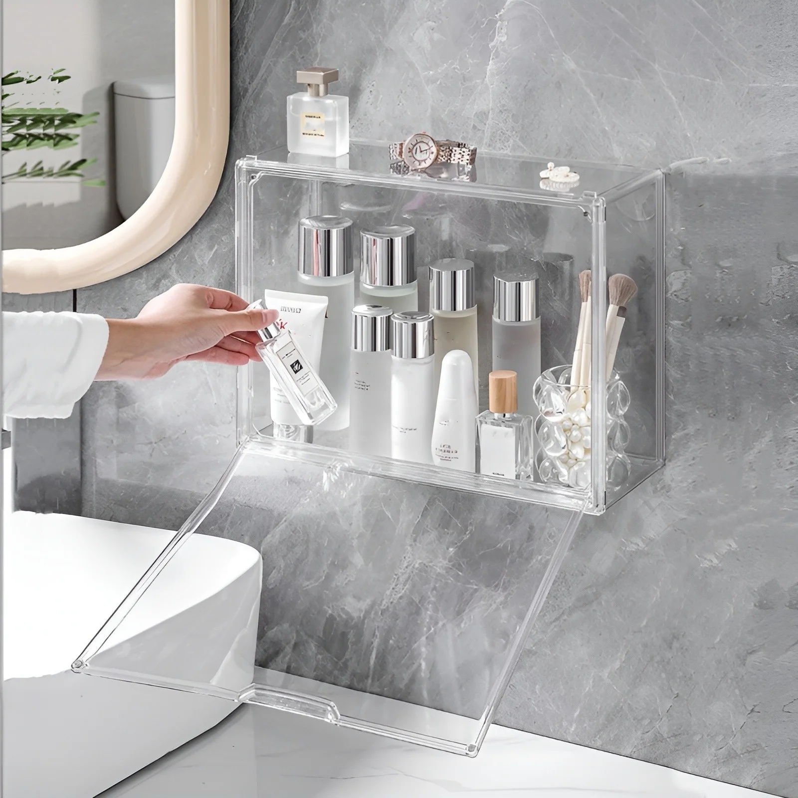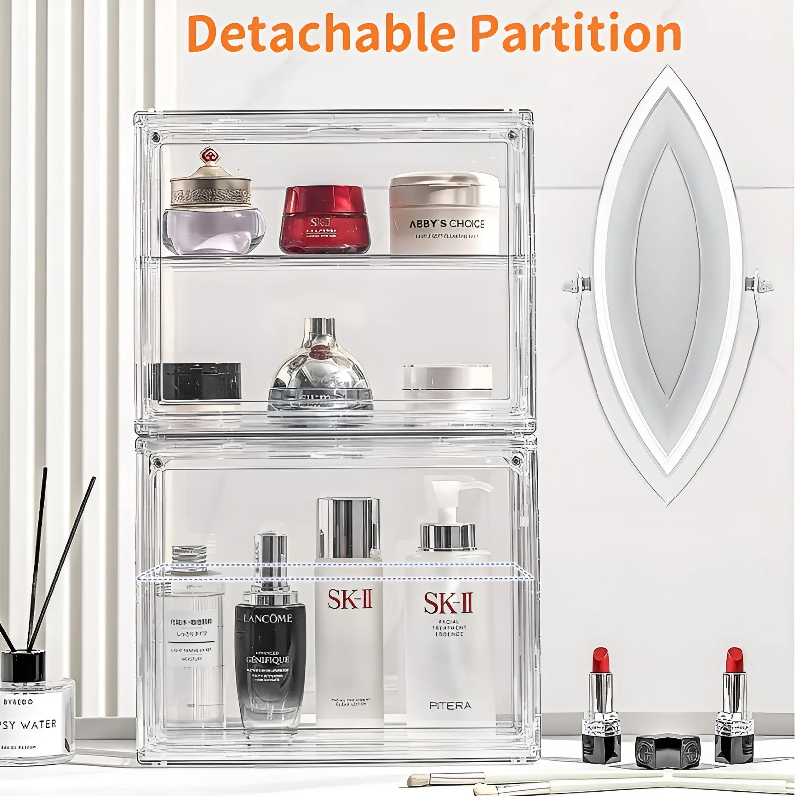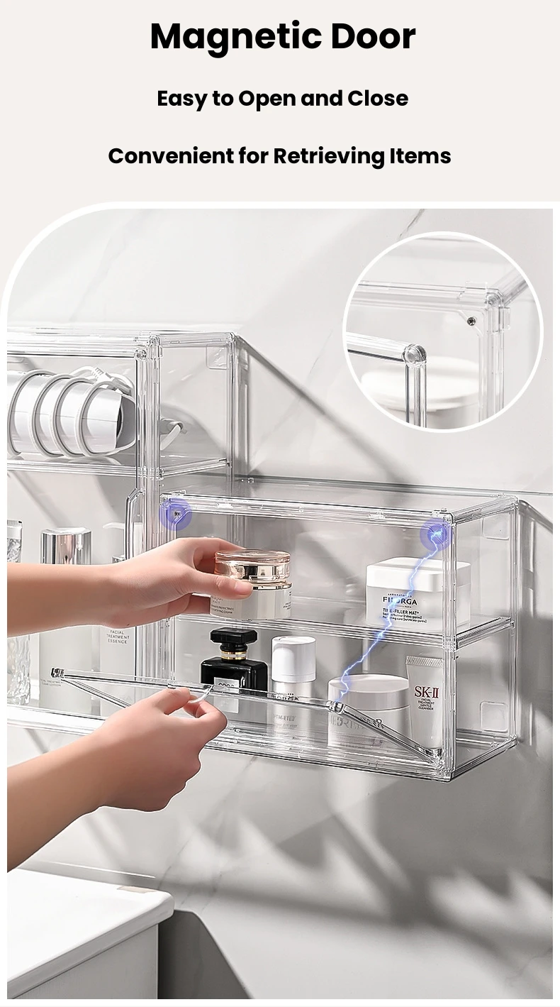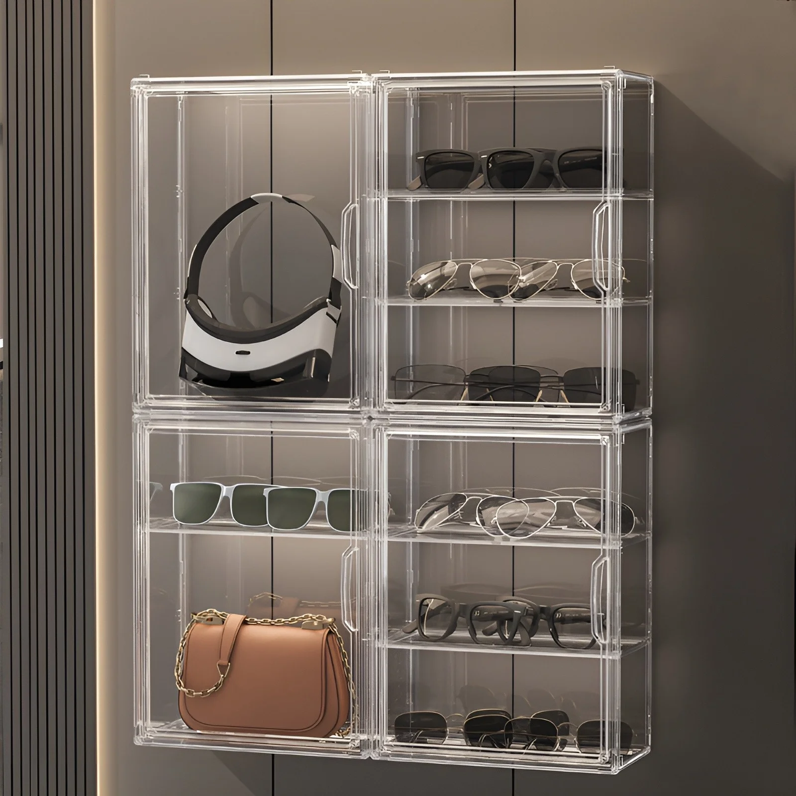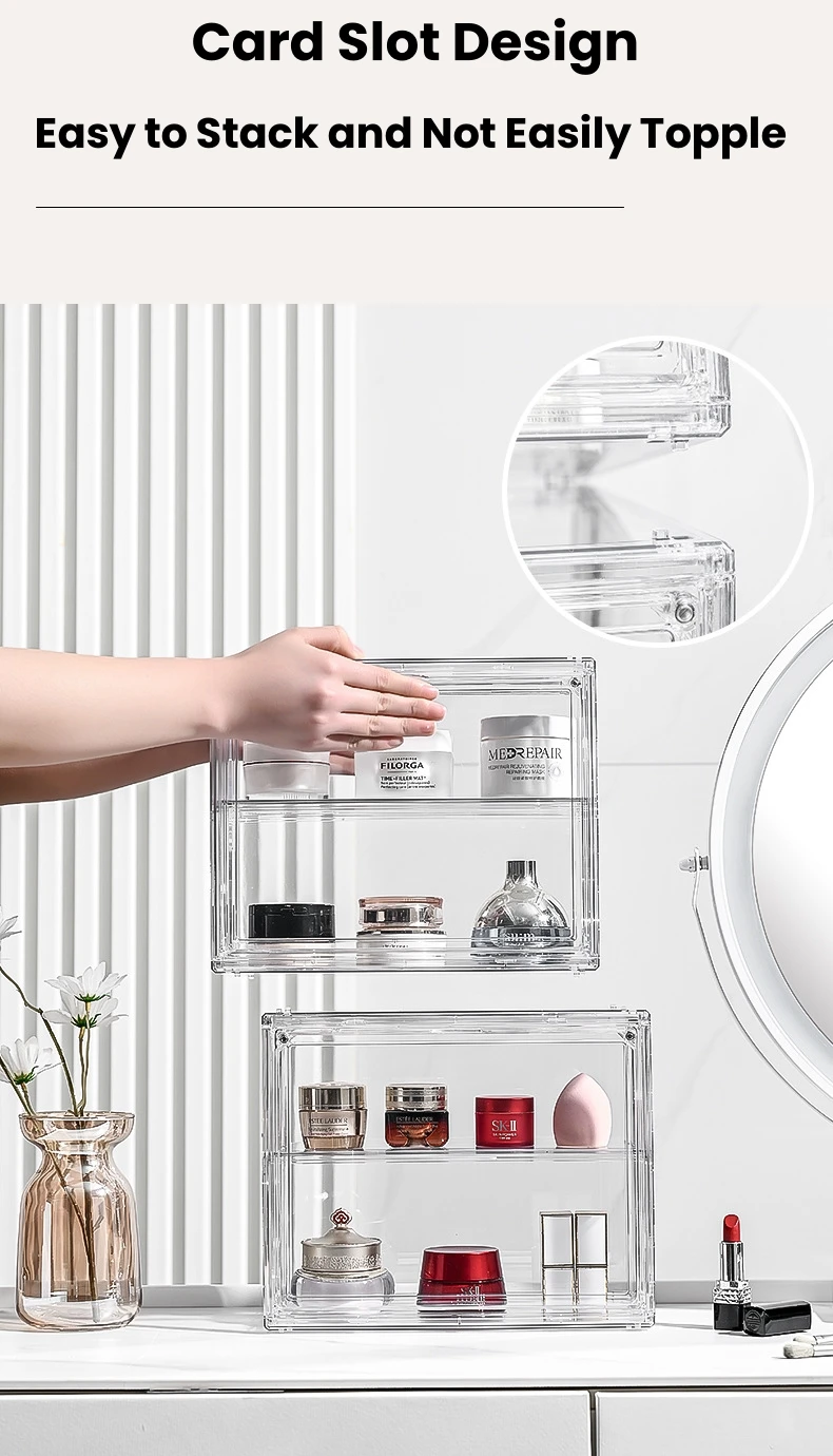 1 PC ล้างกล่องเก็บ,STACKABLE Display Organizer พร้อมฝาปิดแม่เหล็ก,กันฝุ่นตู้โชว์สําหรับกระเป๋าเครื่องสําอางของสะสม LEGO