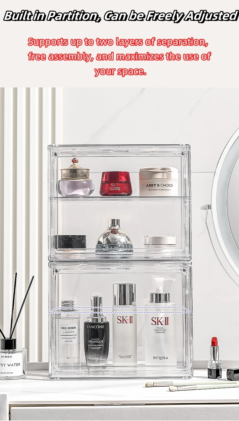 1 PC ล้างกล่องเก็บ,STACKABLE Display Organizer พร้อมฝาปิดแม่เหล็ก,กันฝุ่นตู้โชว์สําหรับกระเป๋าเครื่องสําอางของสะสม LEGO จาก 1 รีวิว
