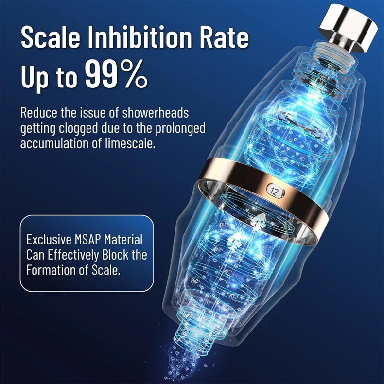 【การยับยั้งสเกล】อัตราการยับยั้งมาตราส่วนของเครื่องกรองน้ำแบบแข็งสามารถเข้าถึงได้มากกว่า99% ภายใต้การทดลองมาตรฐาน แต่ละกรัมสามารถกรองน้ำได้2ตันเพื่อป้องกันไม่ให้หัวฝักบัวของคุณถูกบล็อกด้วยสเกล