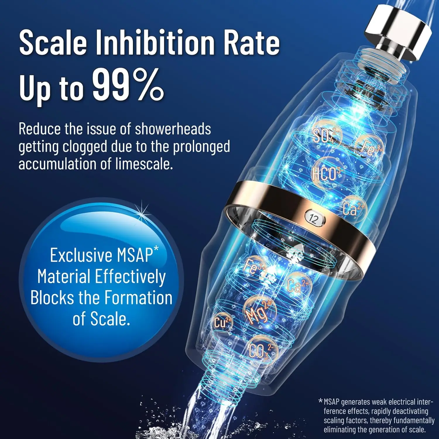 【ฟิลเตอร์อาบน้ำแบบ2 in 1】แตกต่างจากตัวกรองฝักบัวหลายขั้นตอนแบบดั้งเดิมใช้วัสดุที่ออกฤทธิ์ทางชีวภาพแบบบริสคสปริงรุ่นใหม่ พิเศษ MSAP ที่มีประสิทธิภาพป้องกันขนาดวัสดุกรอง + ที่ไม่ซ้ำกันเงินที่โหลดถ่านกัมมันต์+ KDF55 + CaSO3ใน1ไส้กรองน้ำการทำให้บริสุทธิ์น้ำและฟังก์ชั่นยับยั้งสเกลพร้อมกัน