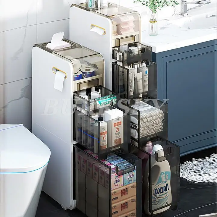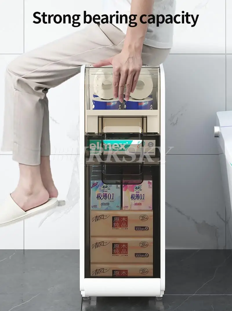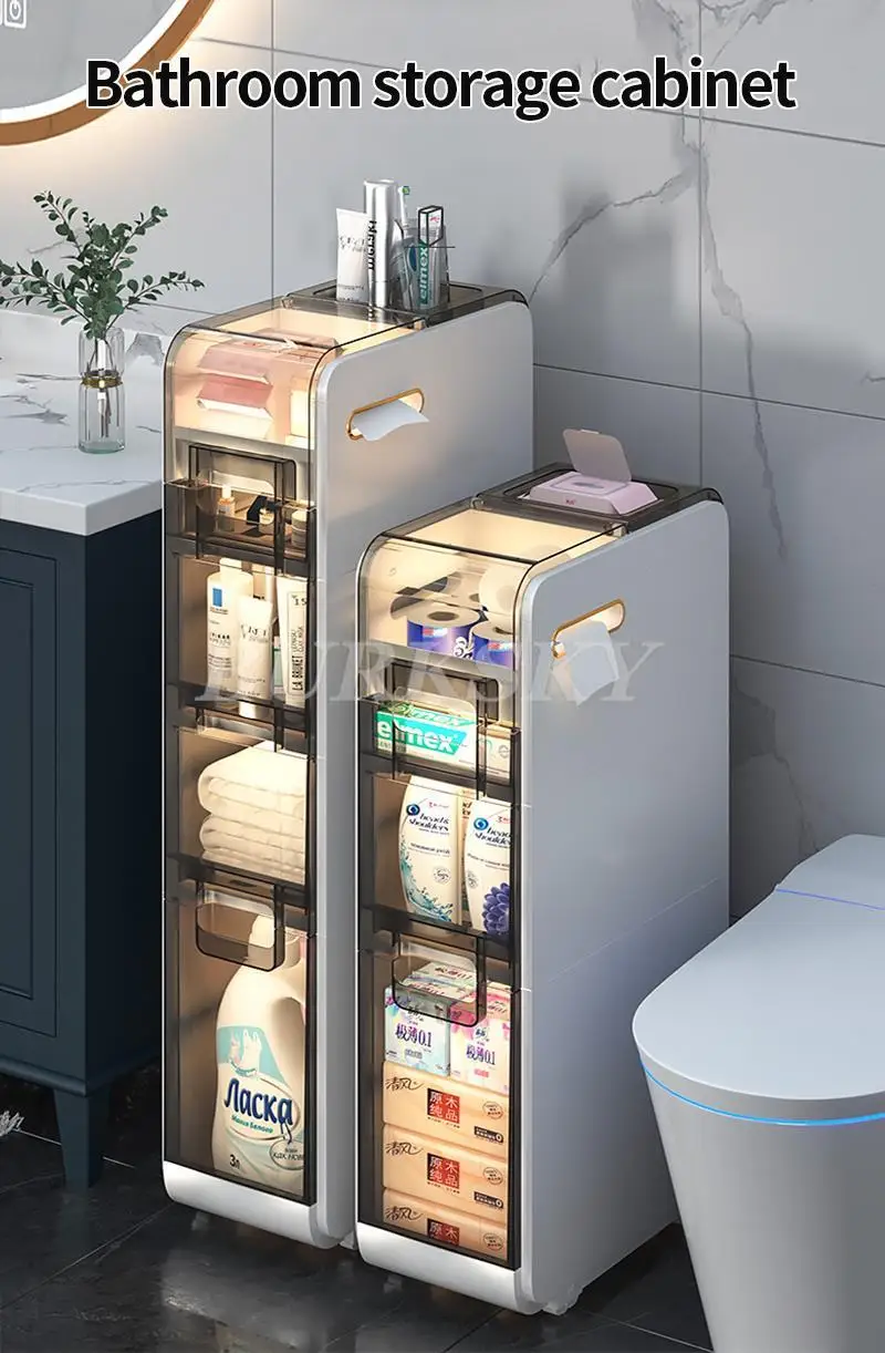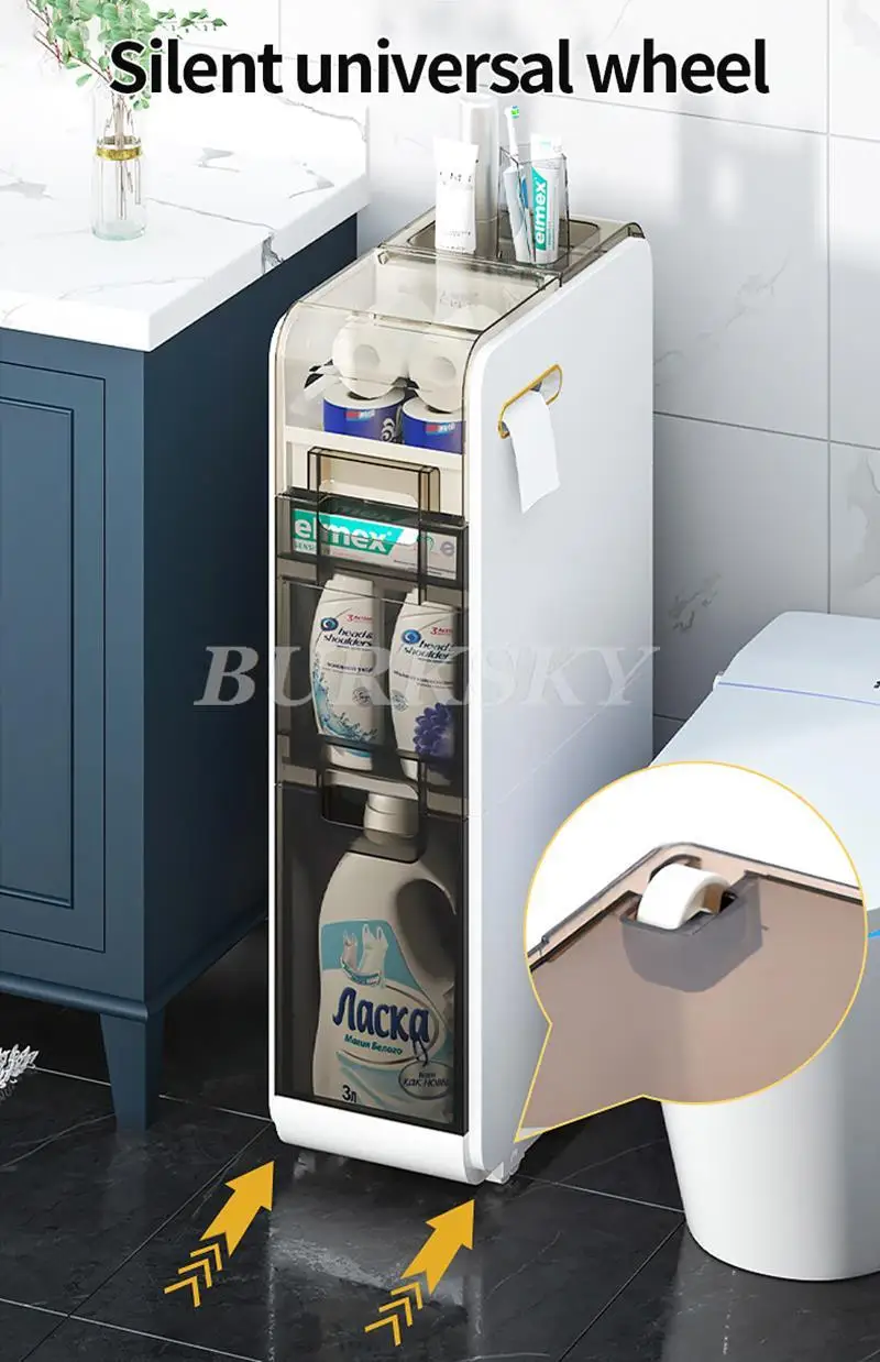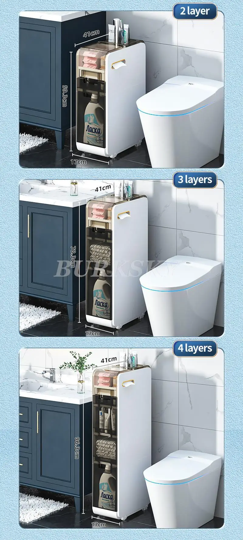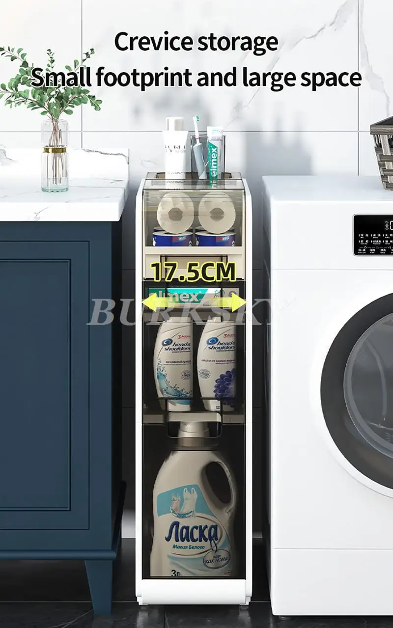 รถเข็นเก็บของแคบสำหรับช่องว่างในครัว พร้อมล้อเลื่อน ตู้เก็บของสำหรับตู้เย็น ห้องน้ำ ชั้นวางของอเนกประสงค์