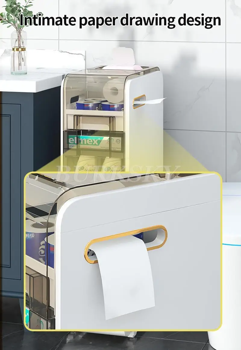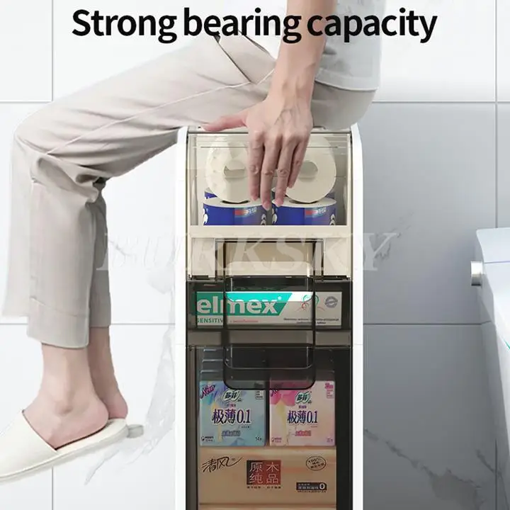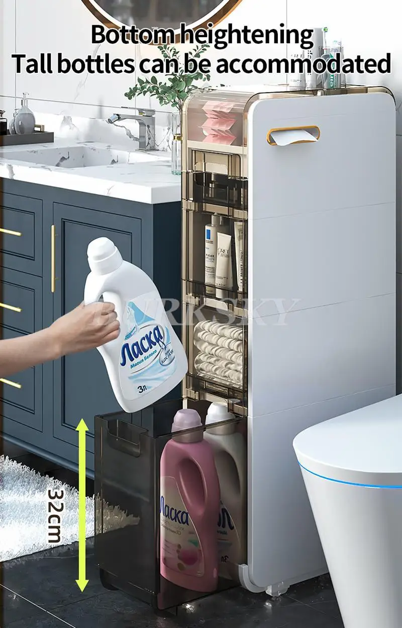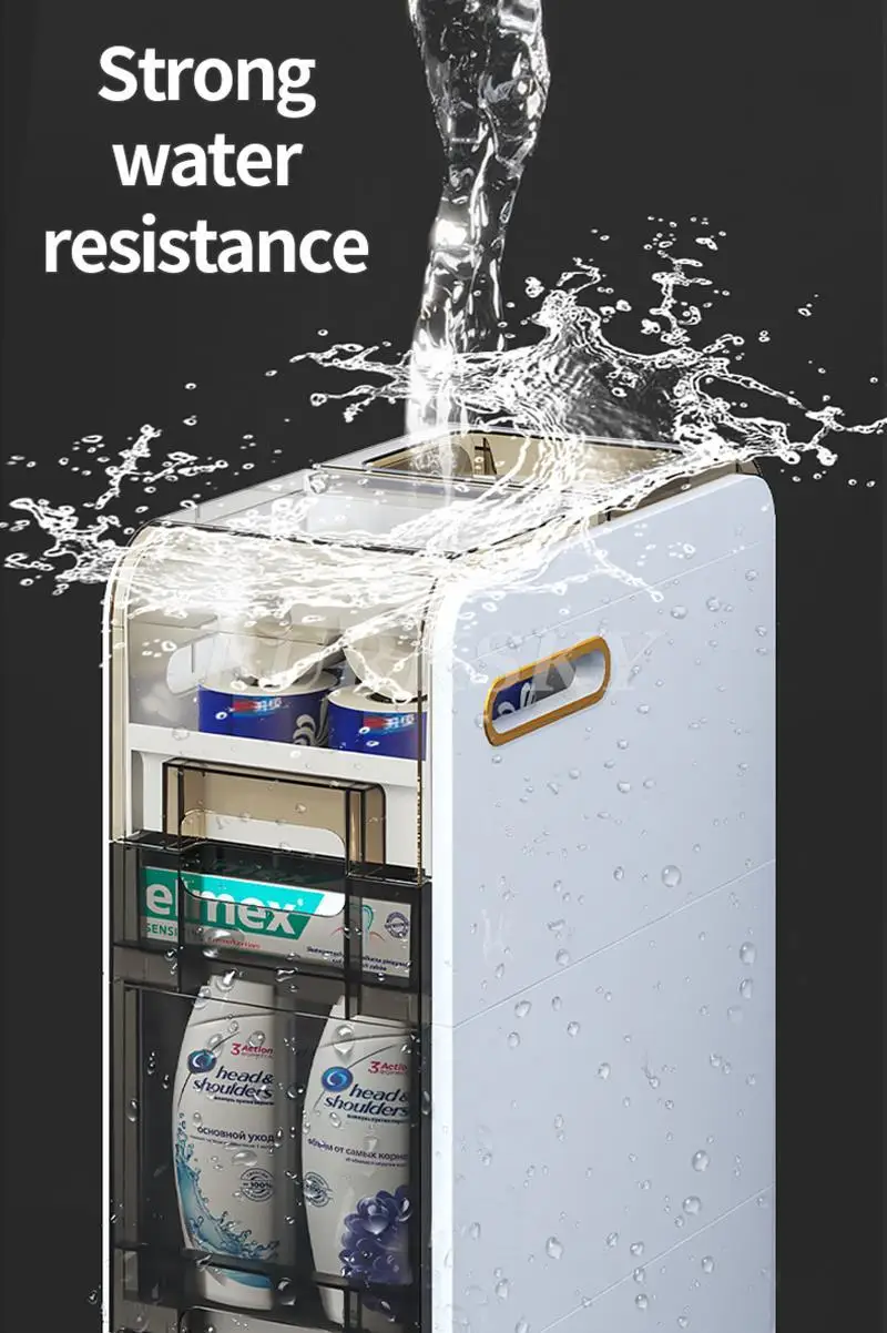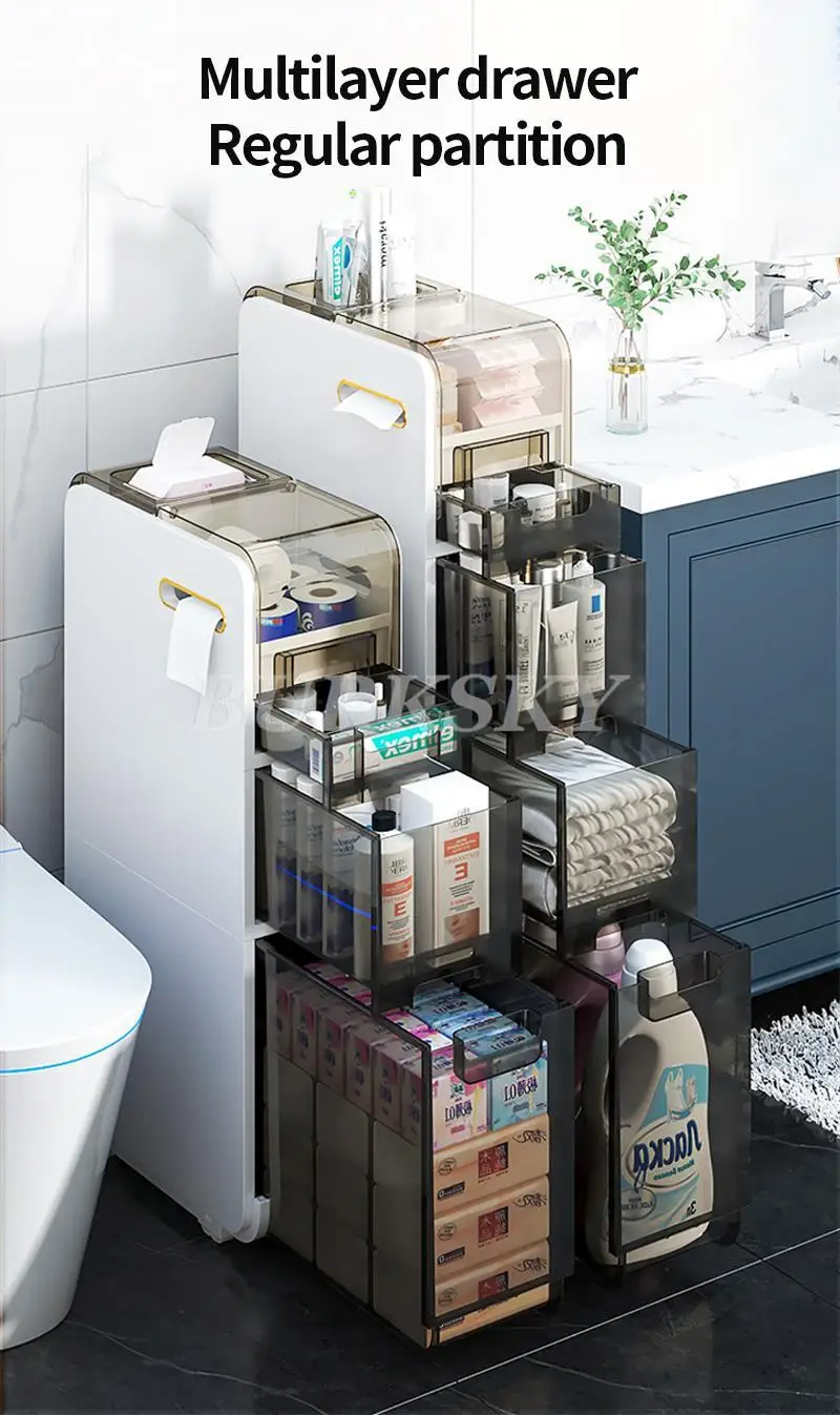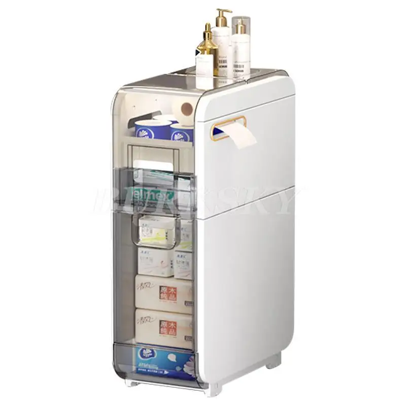 รถเข็นเก็บของแคบสำหรับช่องว่างในครัว พร้อมล้อเลื่อน ตู้เก็บของสำหรับตู้เย็น ห้องน้ำ ชั้นวางของอเนกประสงค์