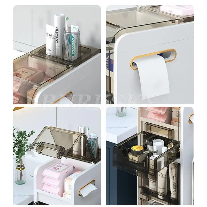 ตู้เก็บของพับได้ Sundries ตู้สําหรับห้องน้ําห้องครัวห้องนอนพร้อมประตู Space Saving Design