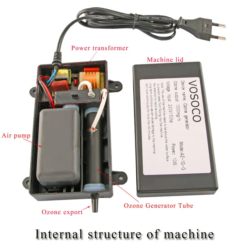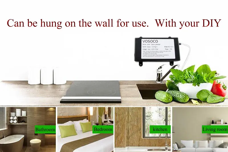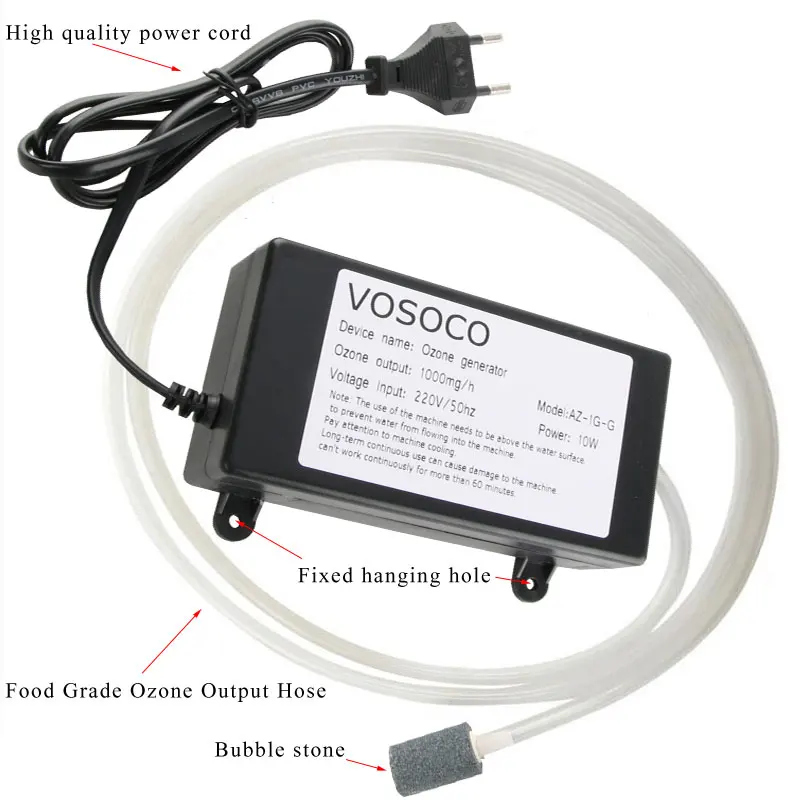 VOSOCO Ozone Generator Ozonizer น้ําเครื่องฟอกอากาศผลไม้ผักเนื้อทําความสะอาดถังปลาห้องครัวห้องน้ํา Deodorization 1000mg