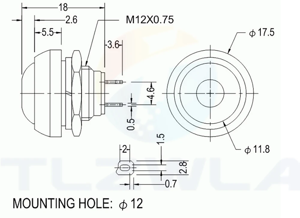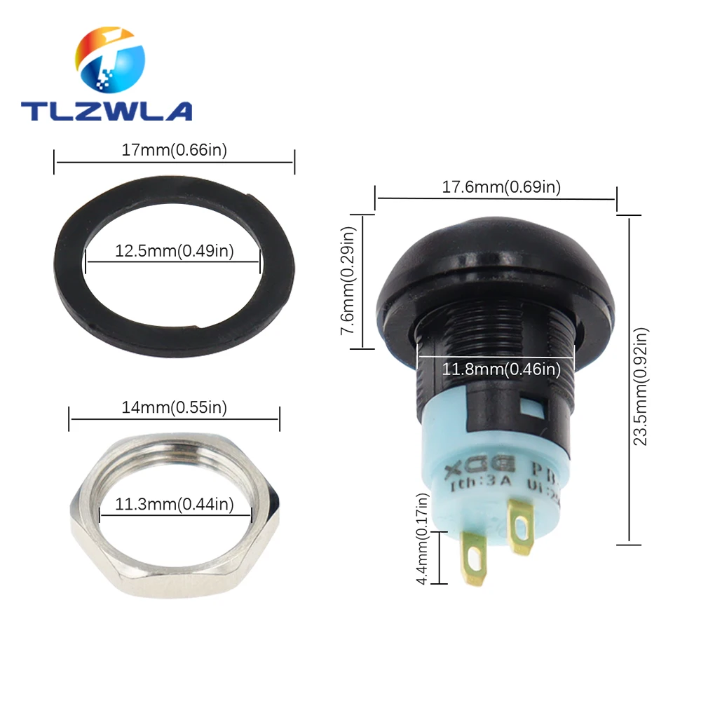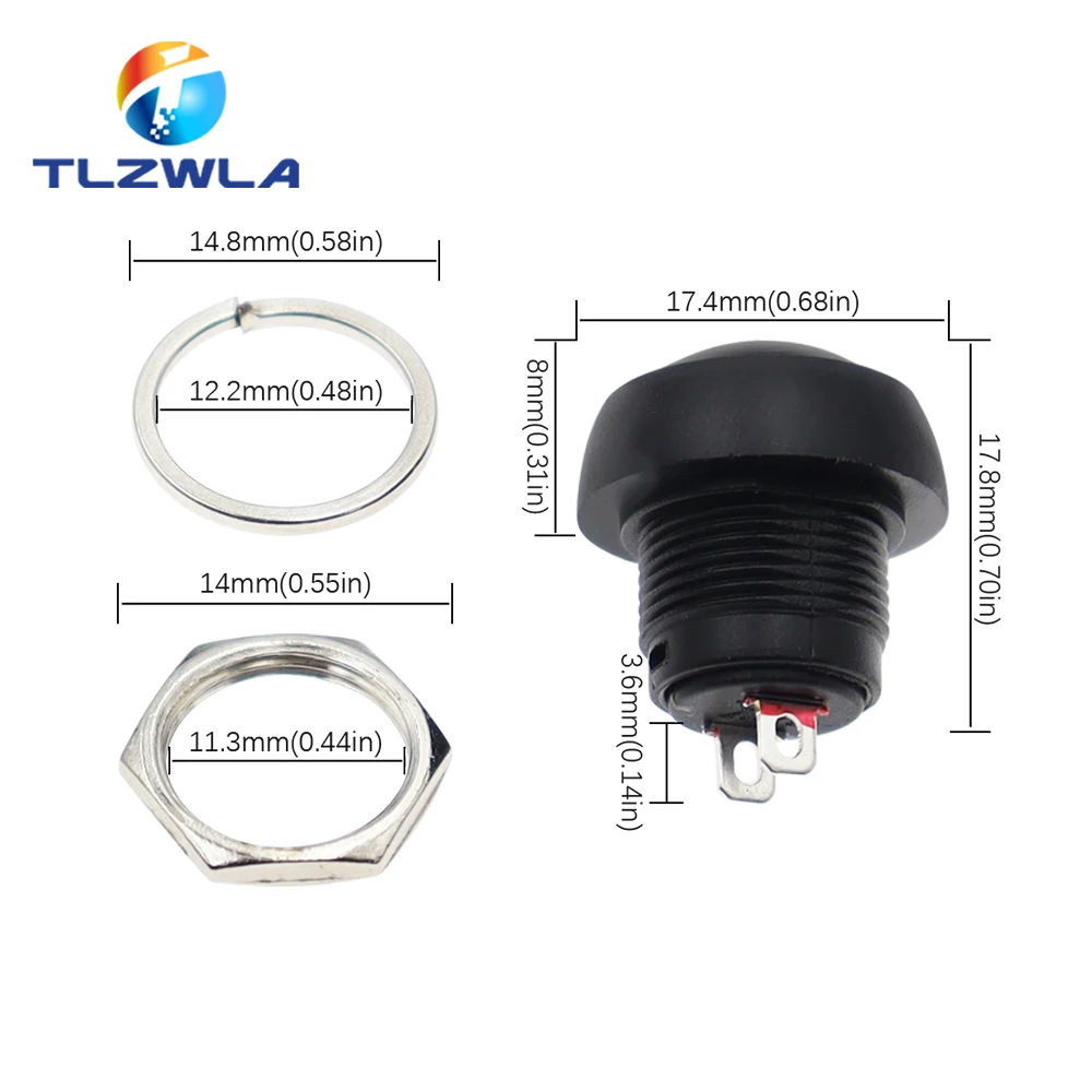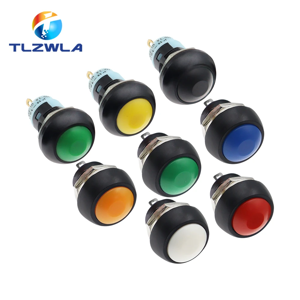 10PCS DIY Mini 12mm Momentary กันน้ํา Push ปุ่มสวิทช์ฮอร์นสีฟ้าสีขาวสีเขียวสีแดงสีเหลืองสีดํา 1A 250V self-reset