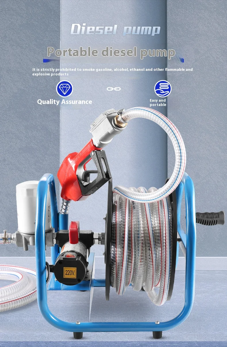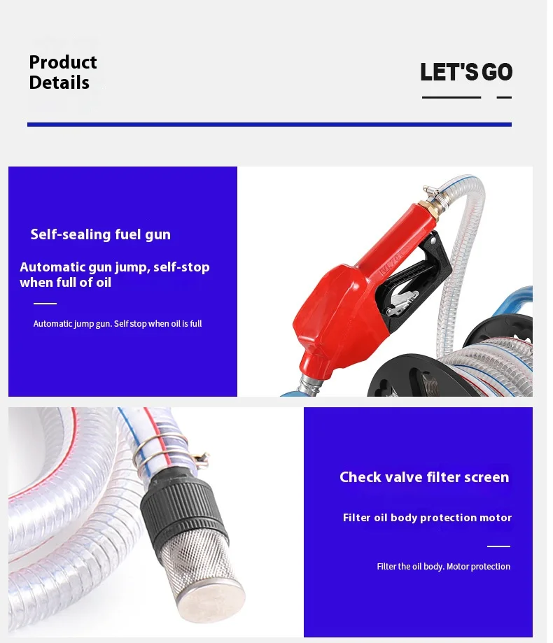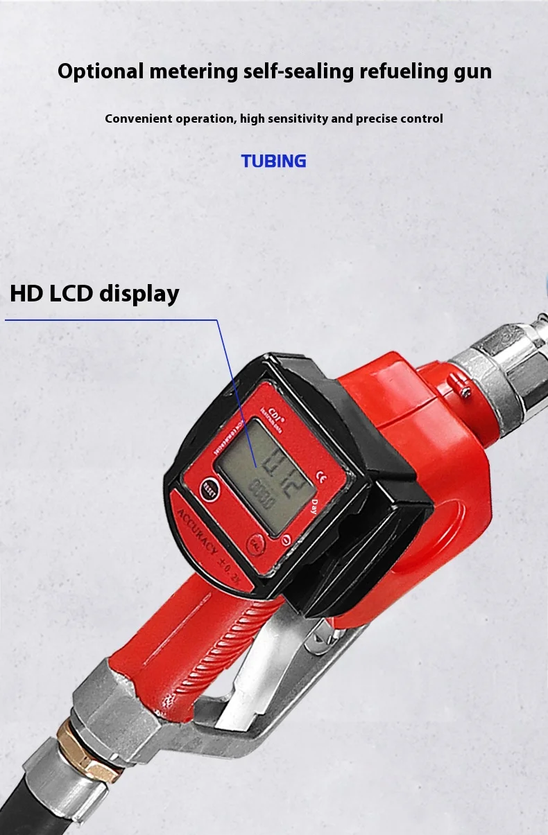 ปั๊มน้ำมันไฟฟ้า 380W สำหรับดีเซล 12V/24V พร้อมหัวจ่ายน้ำมันขนาดเล็กติดตั้งบนยานพาหนะ พร้อมระบบวัดปริมาณ