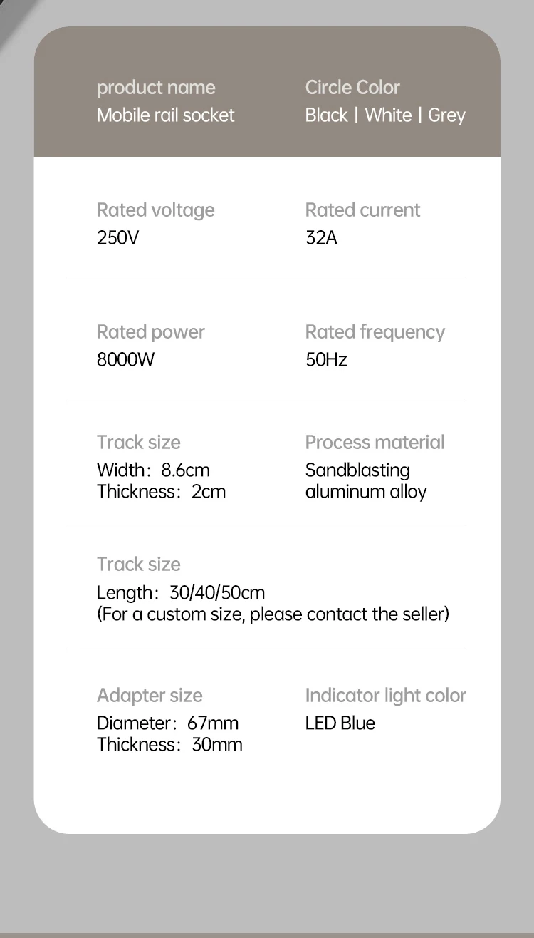 Color: Grey Type: 40CM-Track Rated Voltage: 110-250V