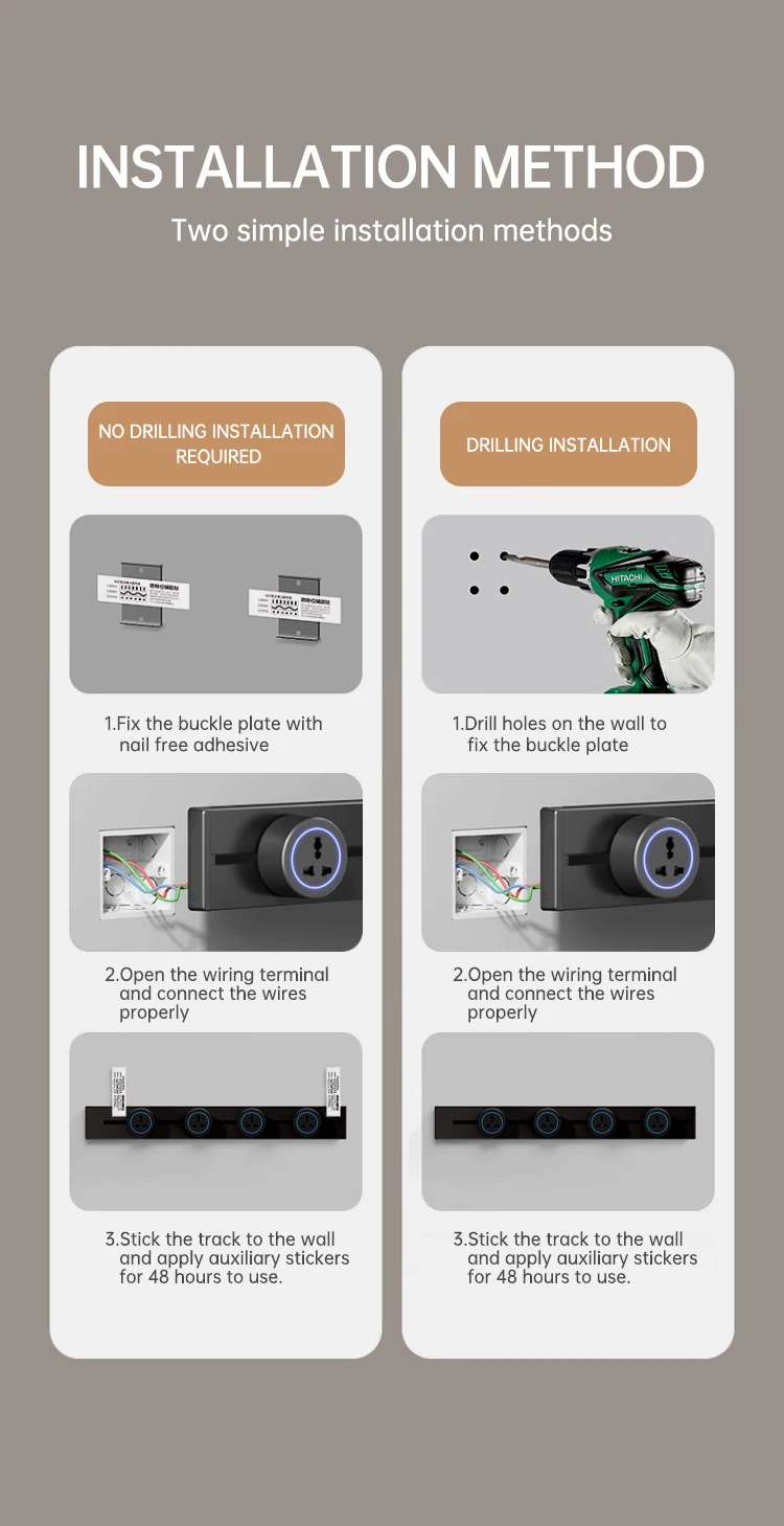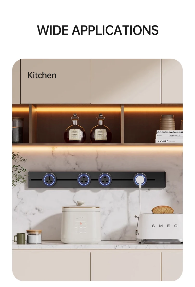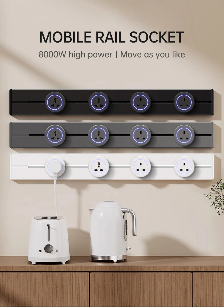 รางปลั๊กไฟติดผนังแบบเคลื่อนย้ายได้ ขนาด 30/40/50 ซม. พร้อมอะแดปเตอร์ปลั๊กไฟคุณภาพสูง รองรับเครื่องใช้ไฟฟ้าภายในบ้าน กำลังไฟ 8000 วัตต์ มาตรฐาน EU US UK พร้อมพอร์ต USB