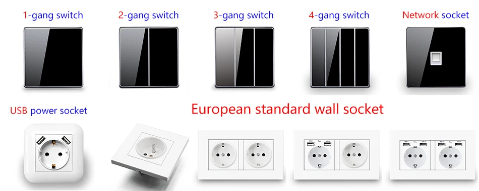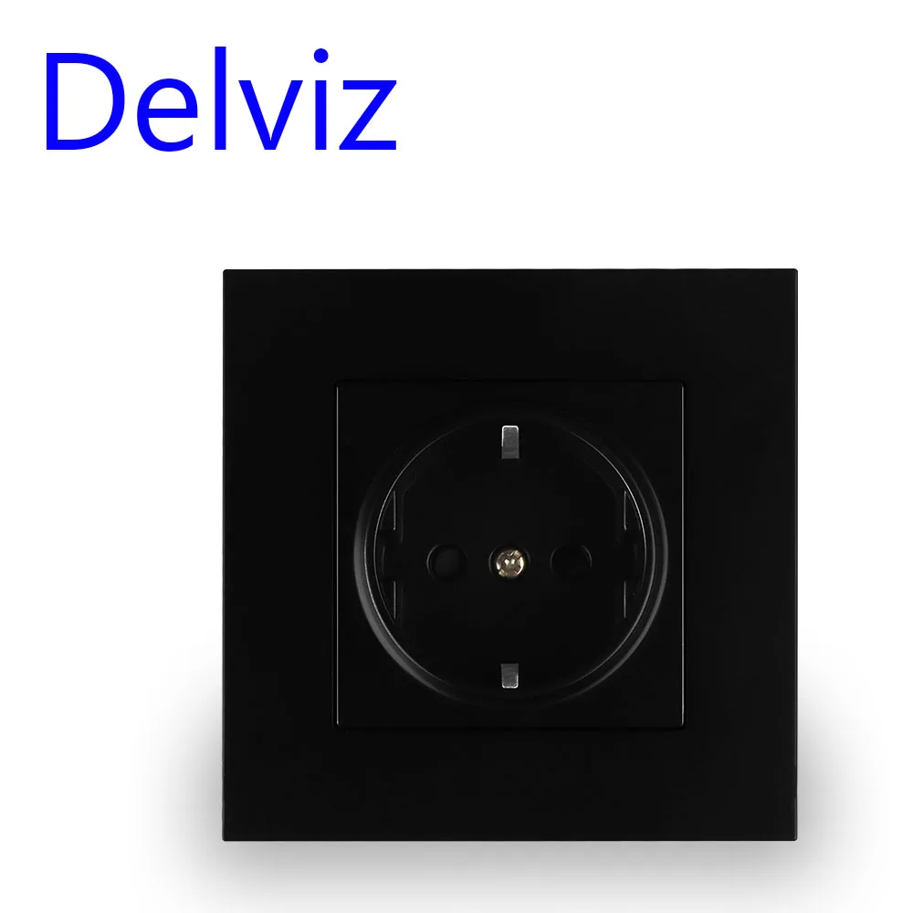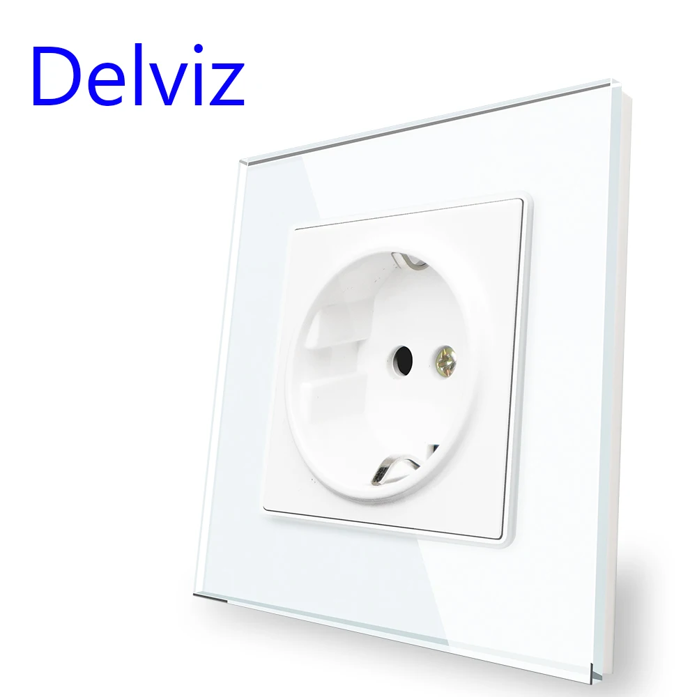 Delviz Wall 16A ปลั๊กไฟ, แผงคริสตัลแก้วคริสตัลสไตล์ใหม่, AC 110V-250V, สีขาว/สีดํา/สีเทา, ในครัวเรือนฝัง EU Standard Outlet