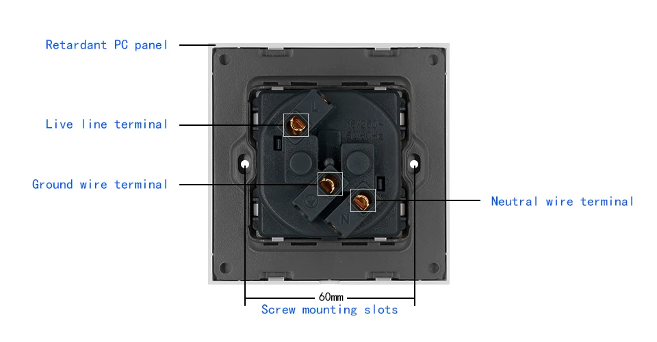 WESA ปลั๊กไฟสีดํา 16A ปลั๊กไฟฟ้ามาตรฐาน EU ไม่สารหน่วงไฟพื้นดินสีสเปรย์แผงพลาสติกซ็อกเก็ตผนังข่าว