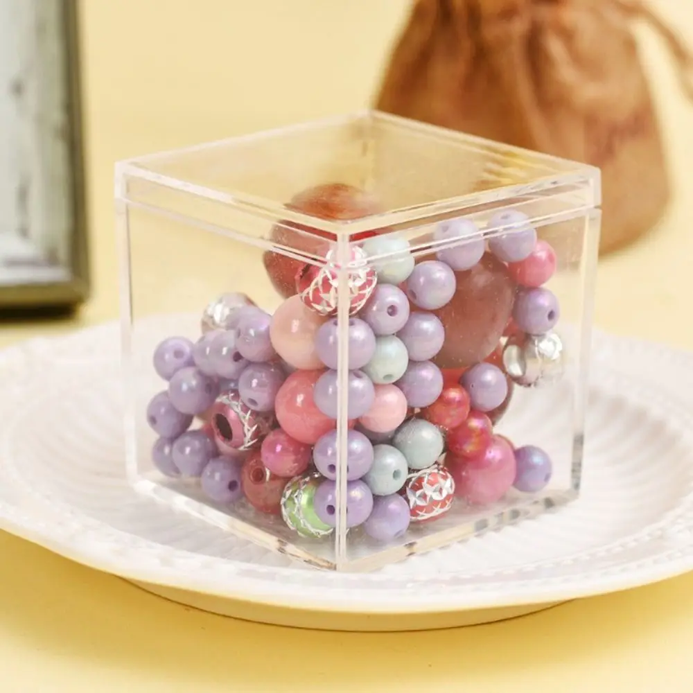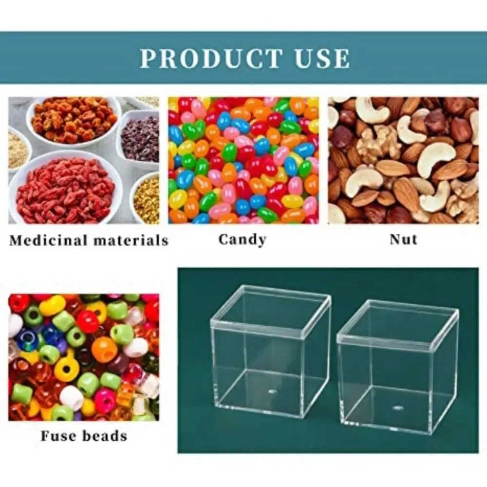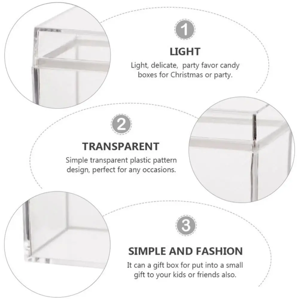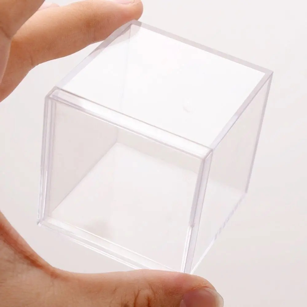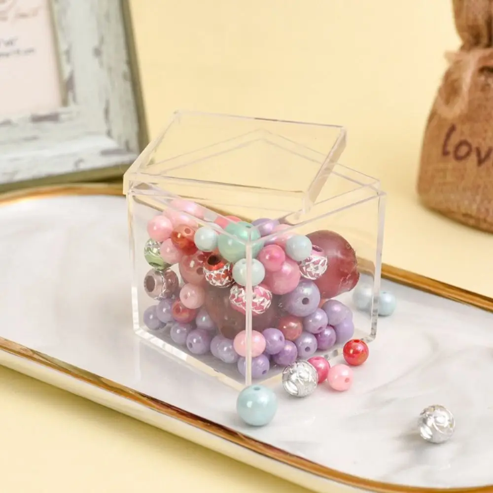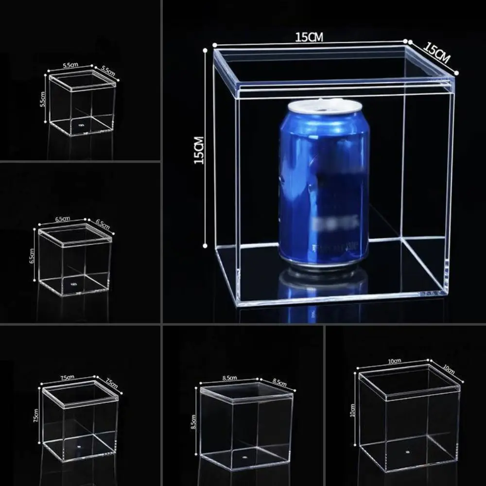 กล่องอะคริลิคขนาดเล็กใสพร้อมฝาปิดกล่องบรรจุภัณฑ์สี่เหลี่ยมกล่องเก็บสินค้าตู้โชว์กันฝุ่นสำหรับใส่อาหารลูกกวาด