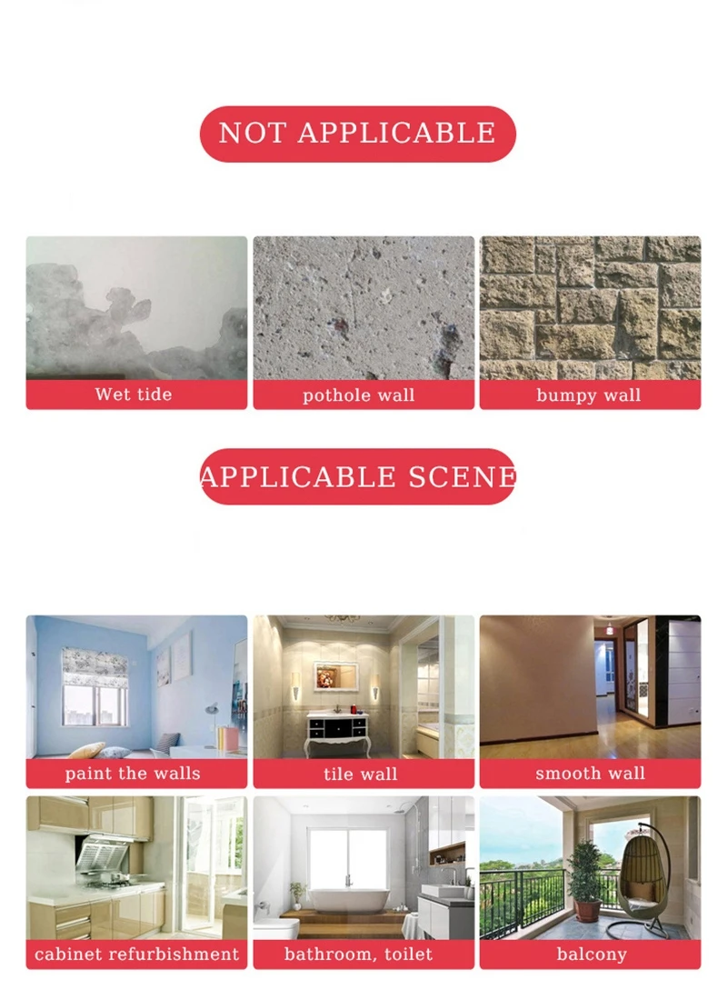 คุณสมบัติ: มีกาวในตัว,กันน้ํา,ป้องกันโรคราน้ําค้าง,ป้องกันการเปรอะเปื้อน,ความคงทนของสีสูง เหมาะสําหรับผู้เช่าและเจ้าของบ้าน!