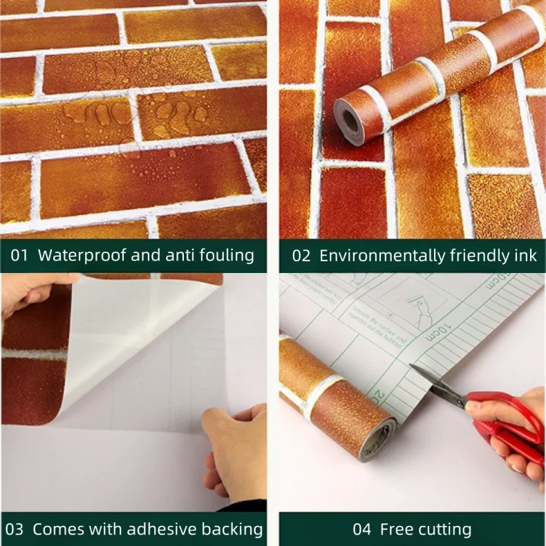 วอลล์เปเปอร์สติกเกอร์ทนต่ออุณหภูมิสูงวอลล์เปเปอร์ติดผนังมีกาวในตัวกาวในตัว 40 ซม. พีวีซีทนน้ํามันตกแต่งบ้าน