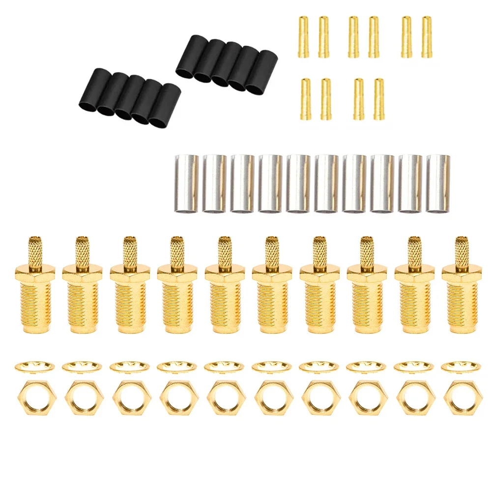 ชุดขั้วต่อโคแอกเชียล RF แบบ SMA ตัวผู้/ตัวเมีย 10 ชิ้น – ขั้วต่อแบบ Crimp 50Ω สำหรับสาย RG316/RG174 + ท่อหดความร้อน